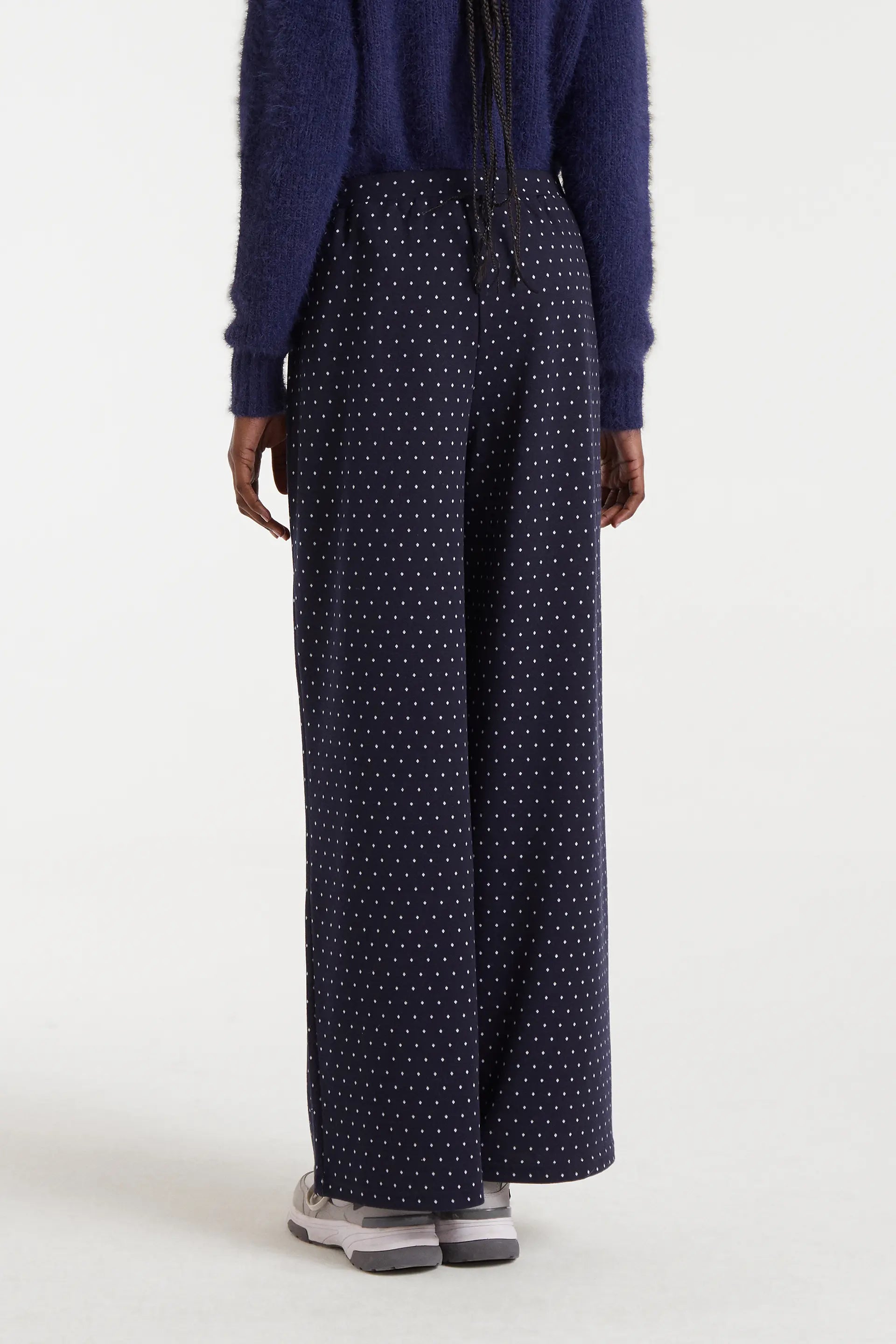 Jacquard trousers with a Super Mini Dots print. High-rise elastic waistband and straight leg. The model is 175 cm tall and is wearing a size S.