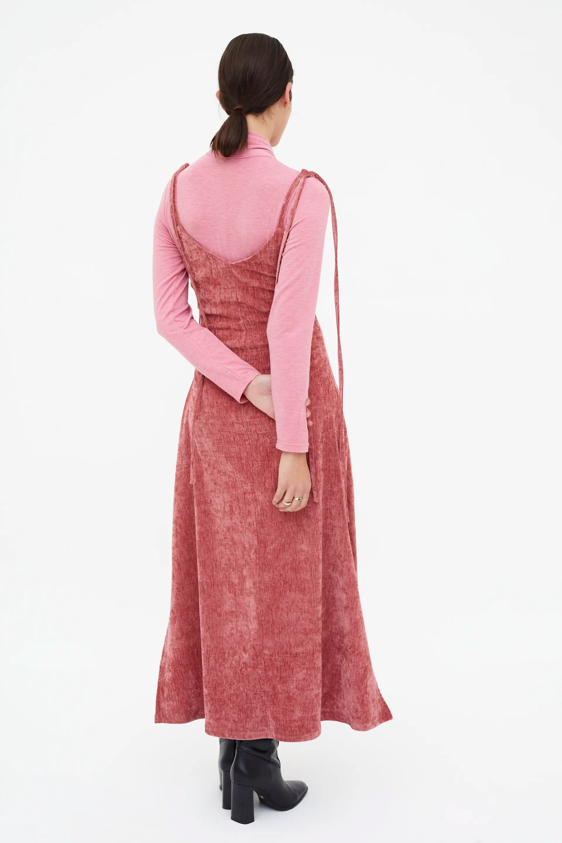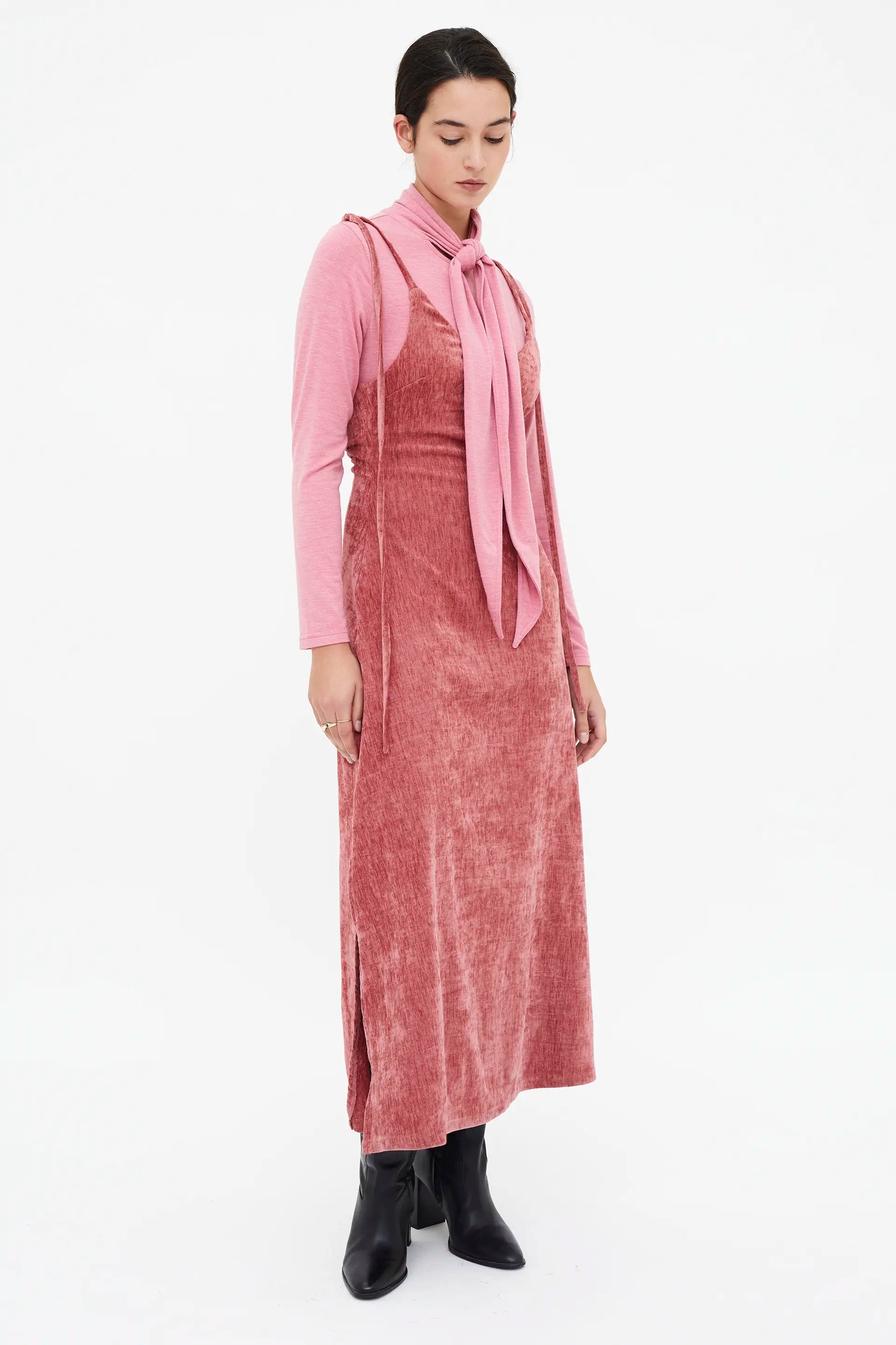 Long pink velvet dress