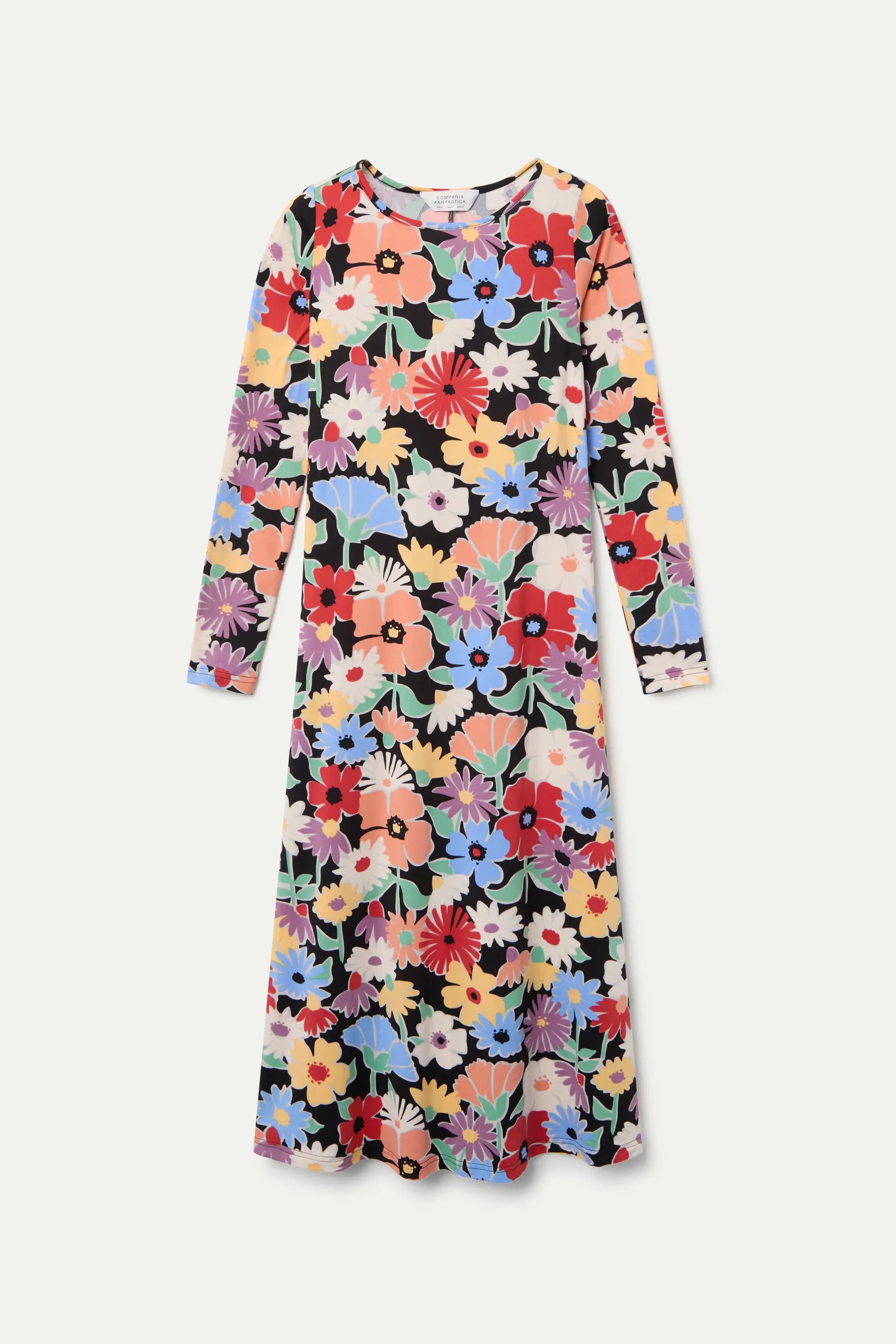 Hampton Big print midi dress. Featuring a bateau neckline and long sleeves. Side slit detail. Model is 177 cm tall and is wearing size S.