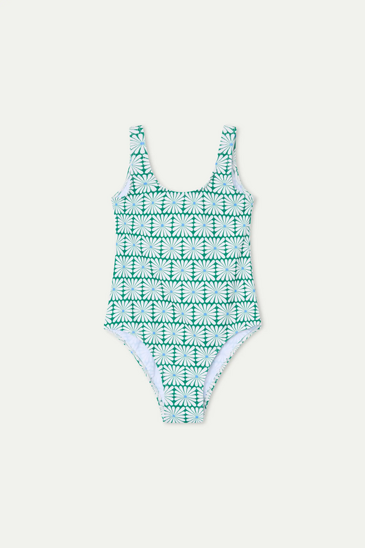 Costume da bagno da bambina con stampa Olive Flower Green