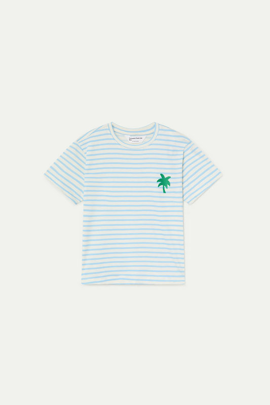 Maglietta con stampa a righe blu e cuore ricamato