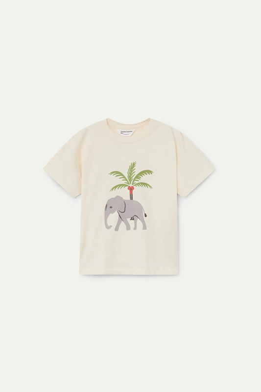 Maglietta con stampa di elefante e palma