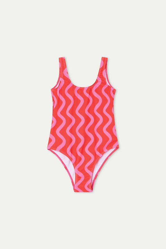 Costume da bagno da bambina con stampa Wave Red & Pink