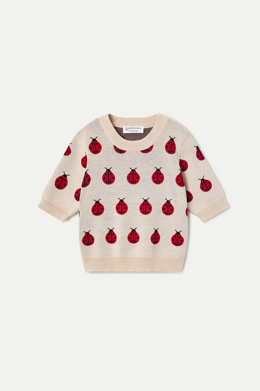 Maglione lavorato a maglia da bambina con stampa Coccinella Rossa