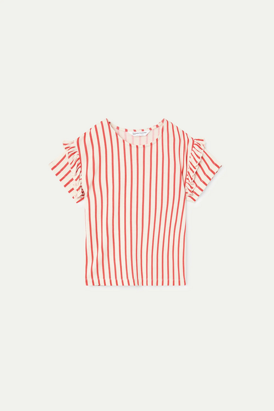 Maglietta da bambina con stampa a righe rosse