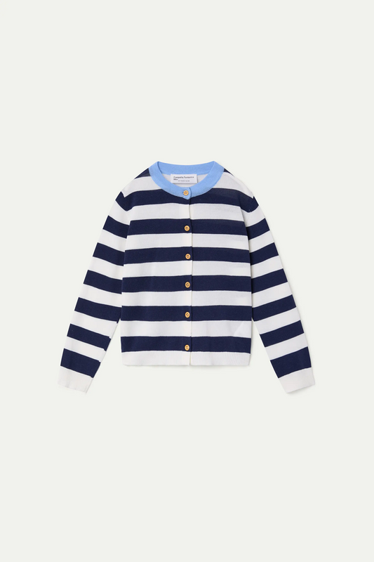 Cardigan da bambina con stampa a righe bianche e blu
