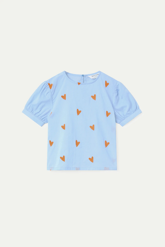 Top bambina, 100% cotone chambray con cuori