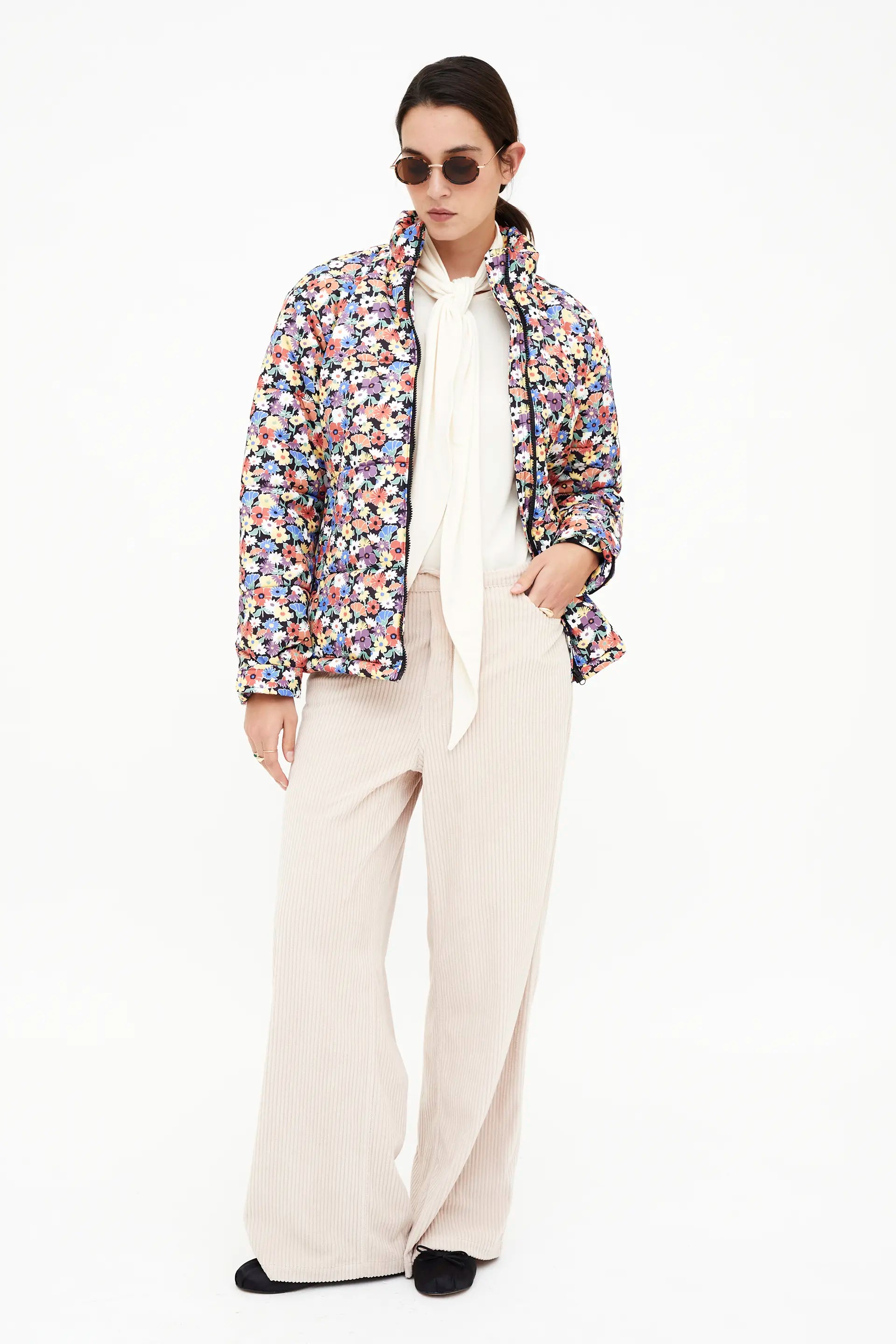 Cappotto corto Hampton con stampa piccola. Collo alto, maniche lunghe e tasche. Spalle leggermente scese. Chiusura con zip frontale. Tasche anteriori. Foderato. La modella è alta 174 cm e indossa una taglia S.