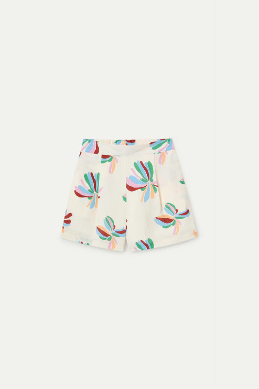 Camicia in tessuto stampato Monarda. Collo a revers e maniche corte con bordo elasticizzato. Chiusura frontale con bottoni bianchi. La modella è alta 175 cm e indossa una taglia S.