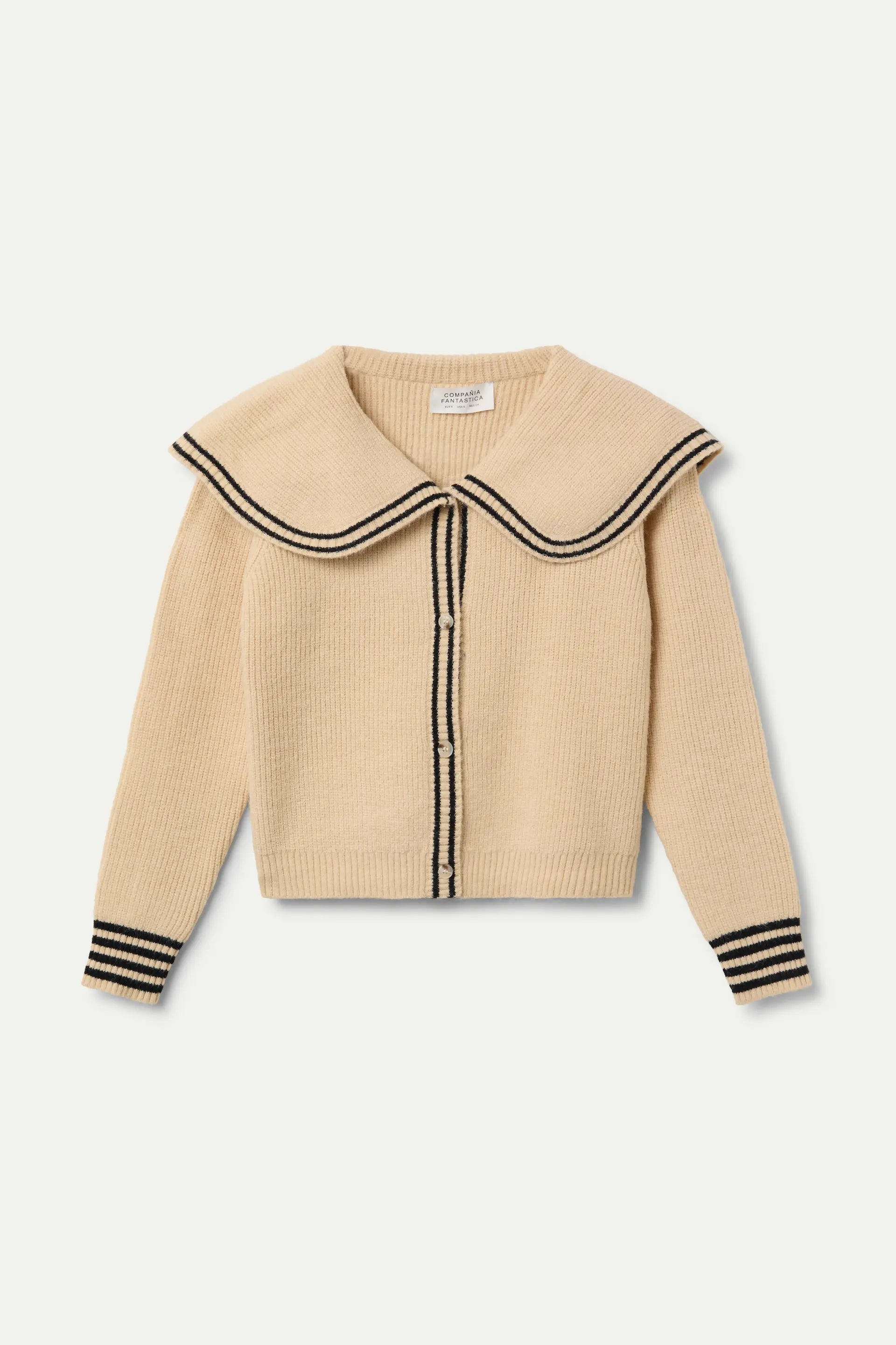 Cardigan beige con collo alla marinara