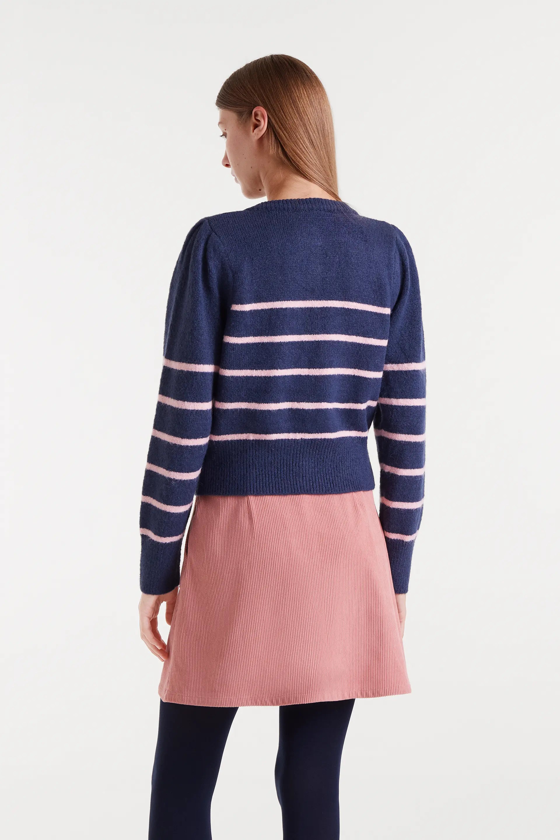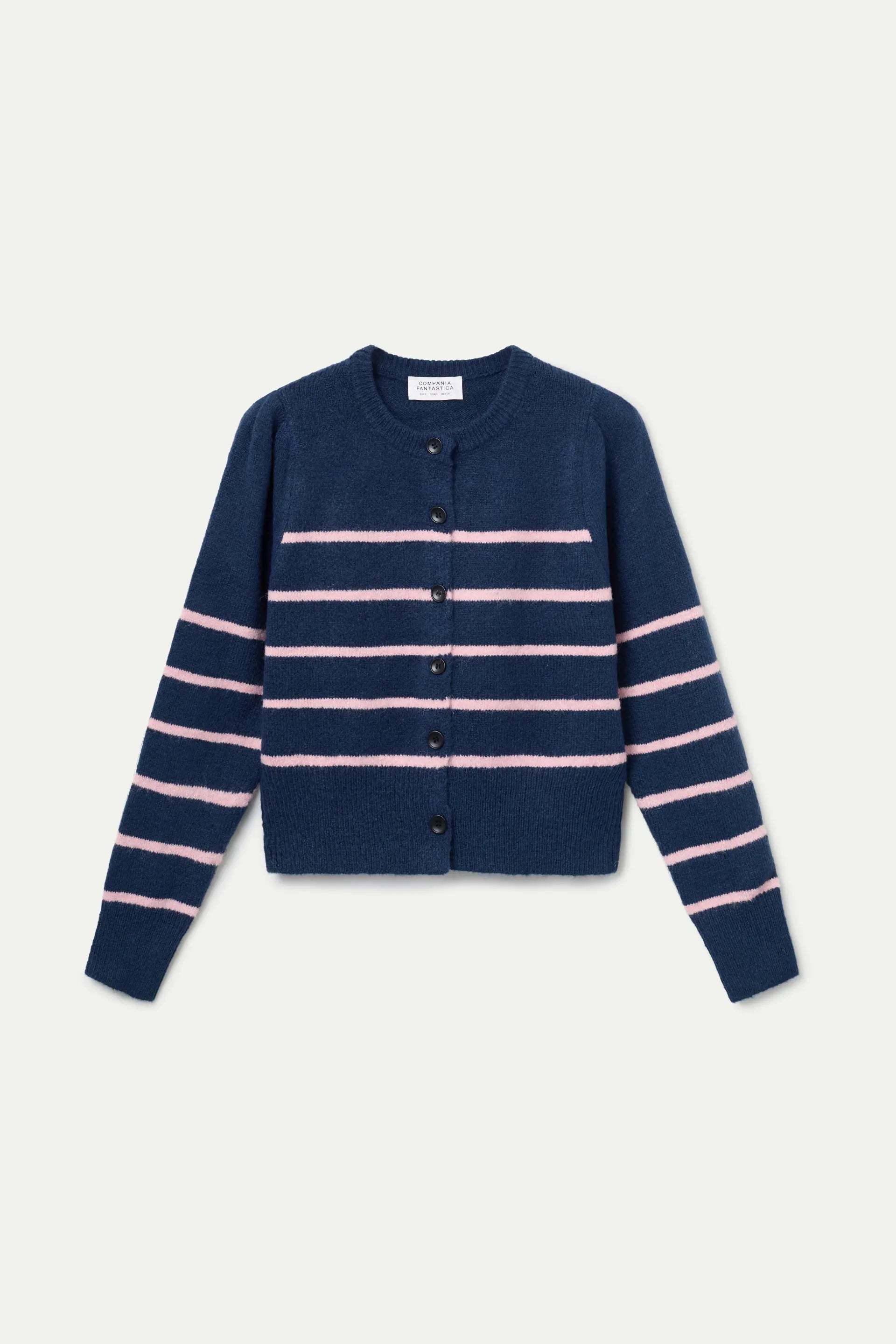 Cardigan lavorato a maglia a righe blu navy e rosa