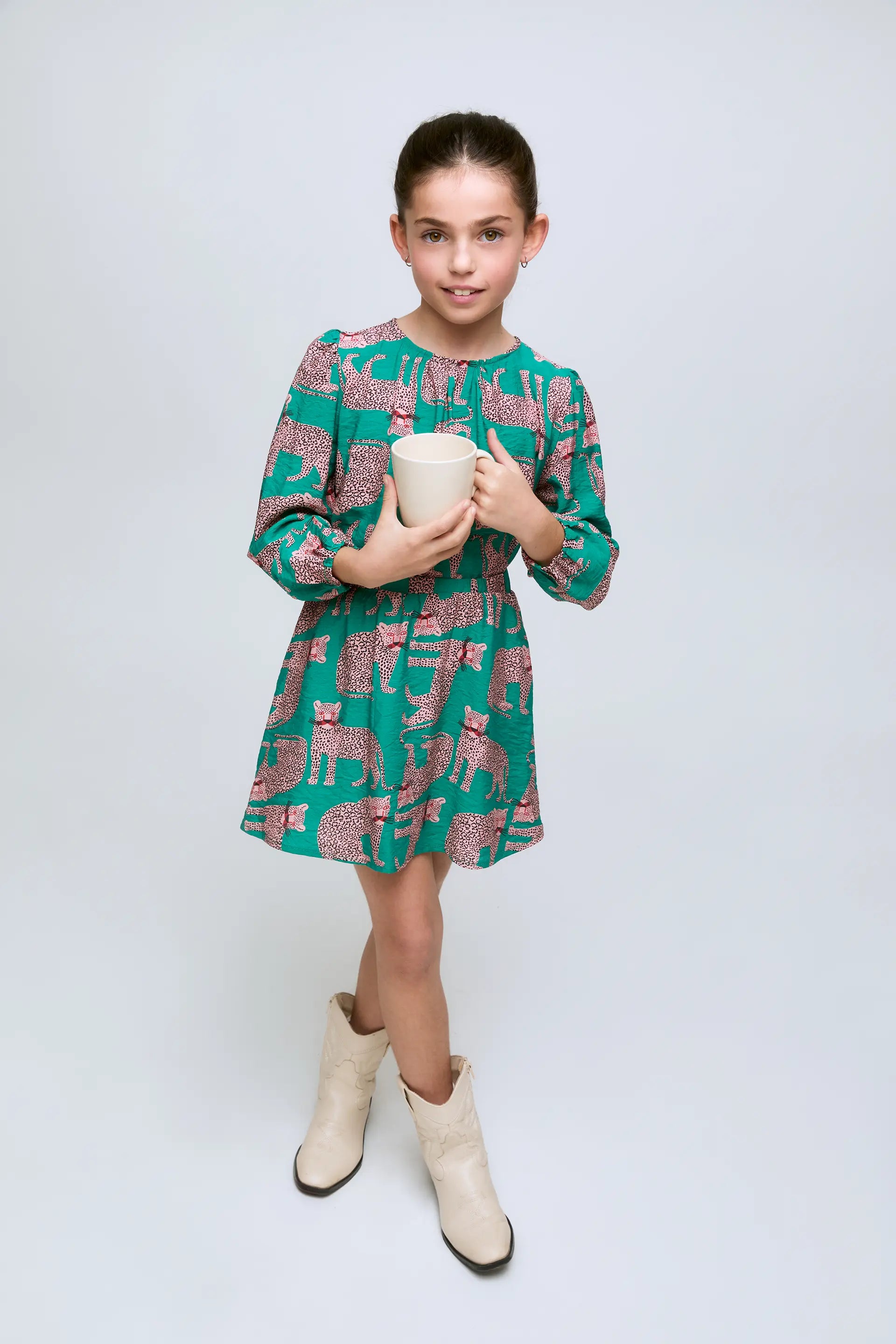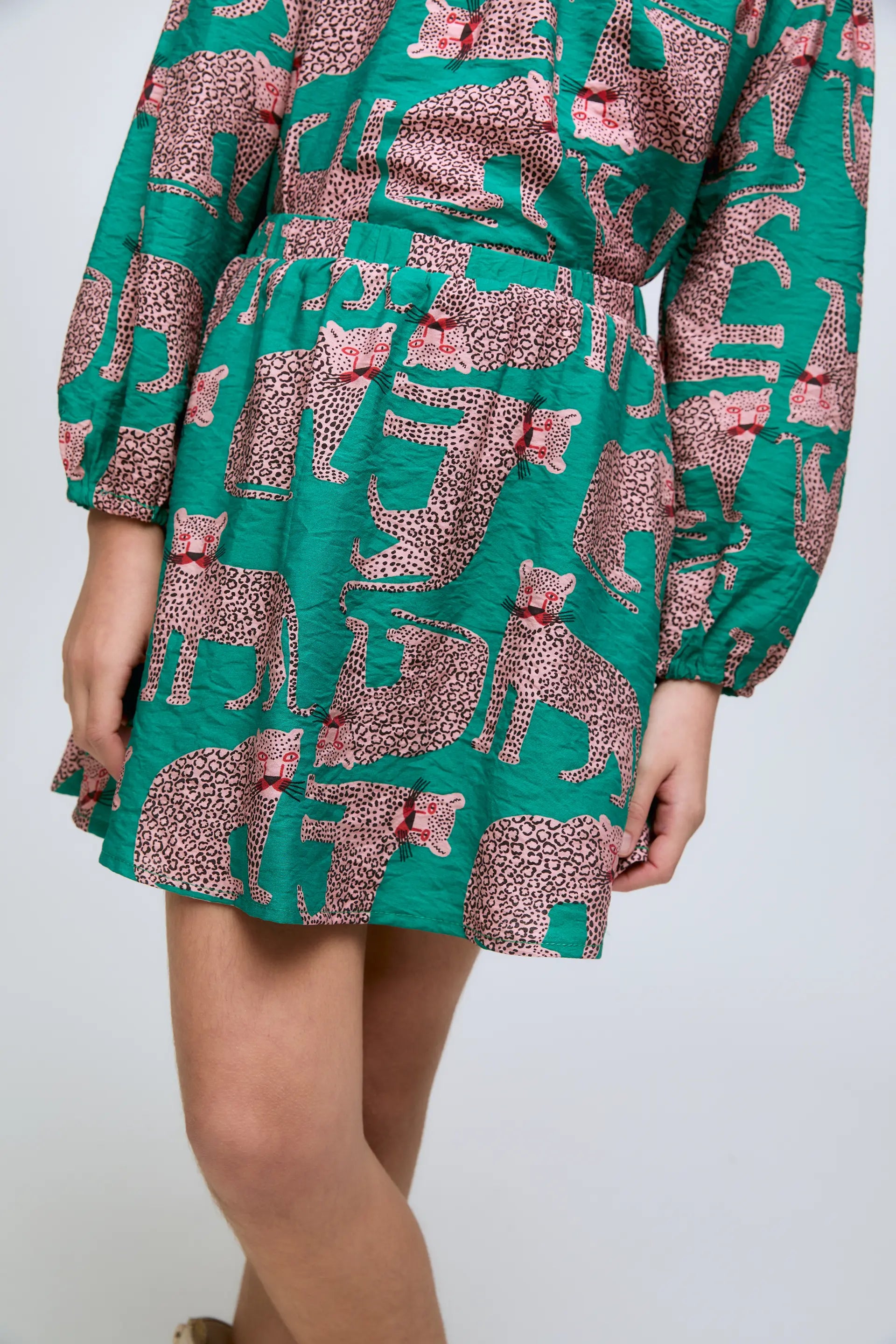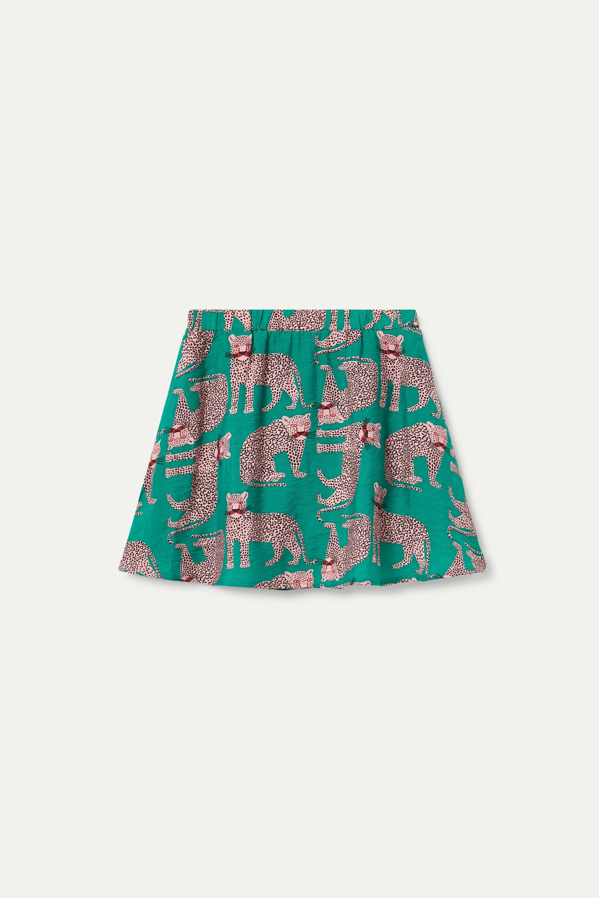 Gonna corta da bambina con stampa giaguaro, elastico in vita per una vestibilità perfetta e pratiche tasche laterali.