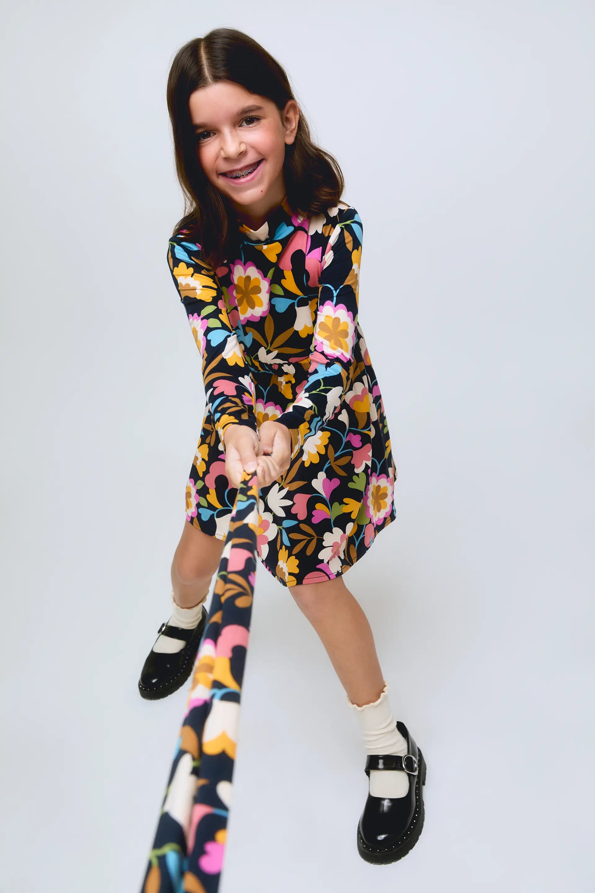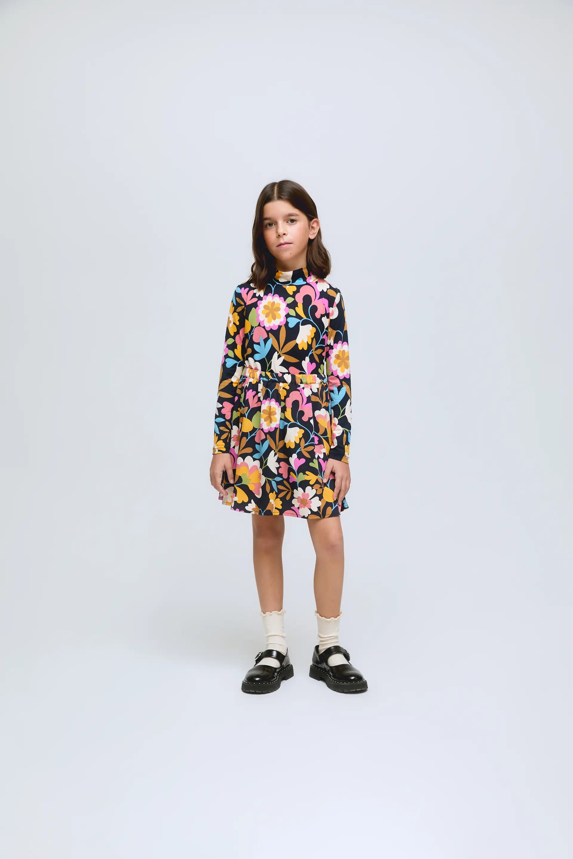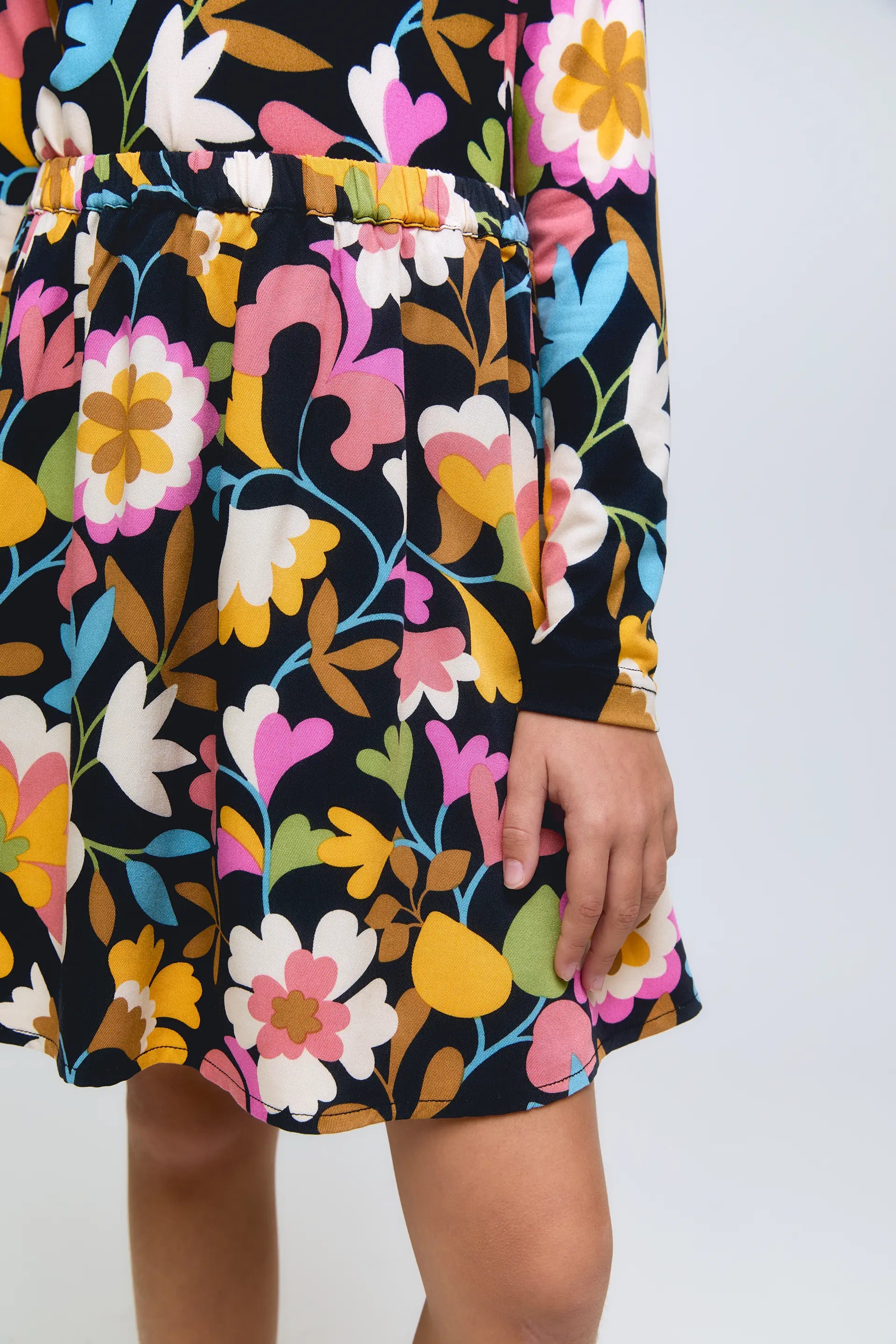 Gonna corta da bambina con stampa floreale e vita elasticizzata con arricciature.