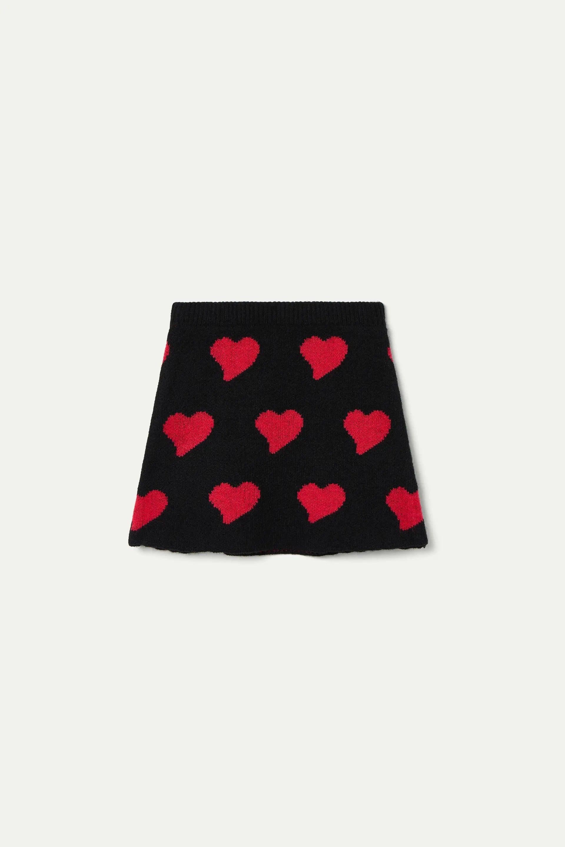 Gonna nera in maglia con cuori rossi Heart Attack.