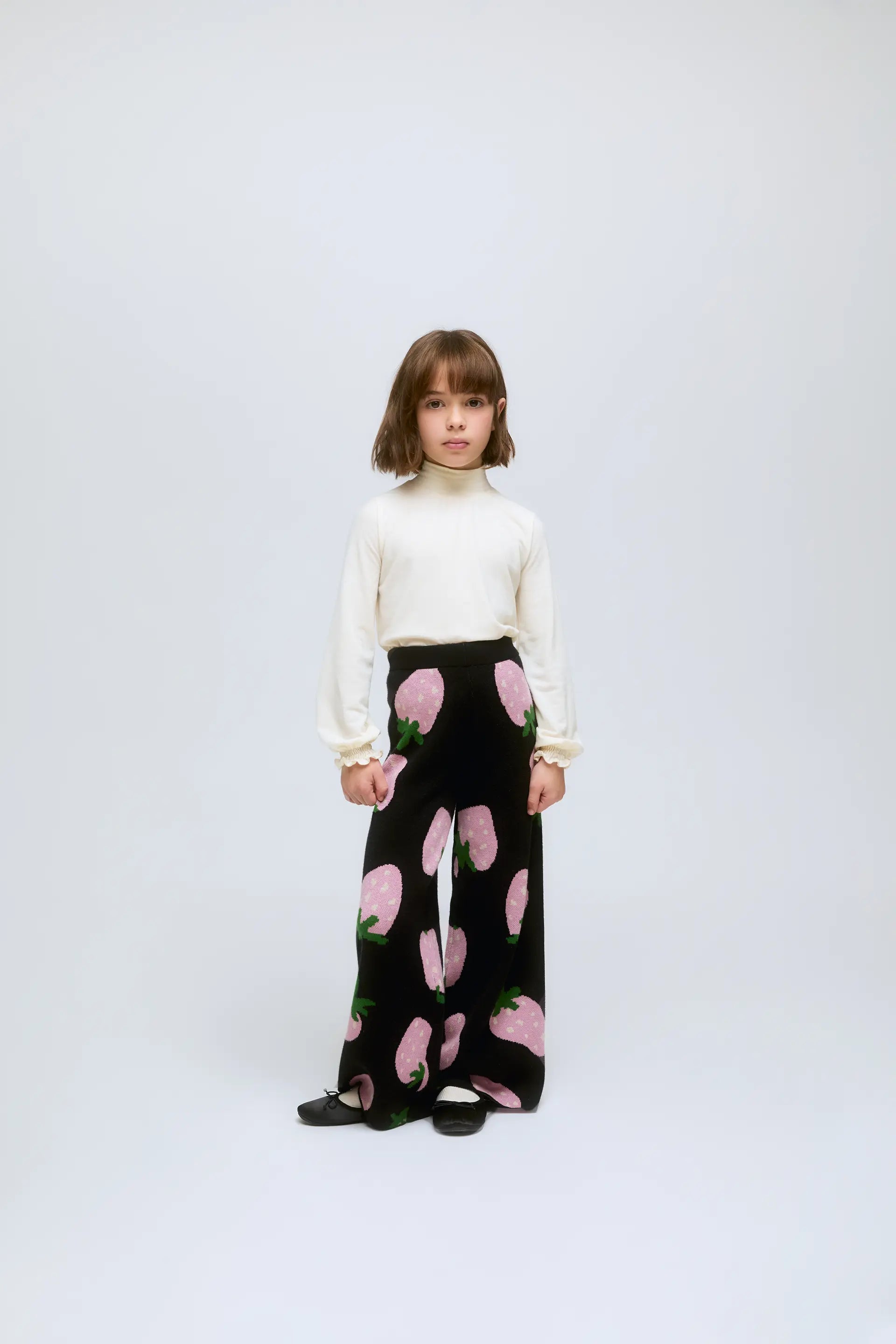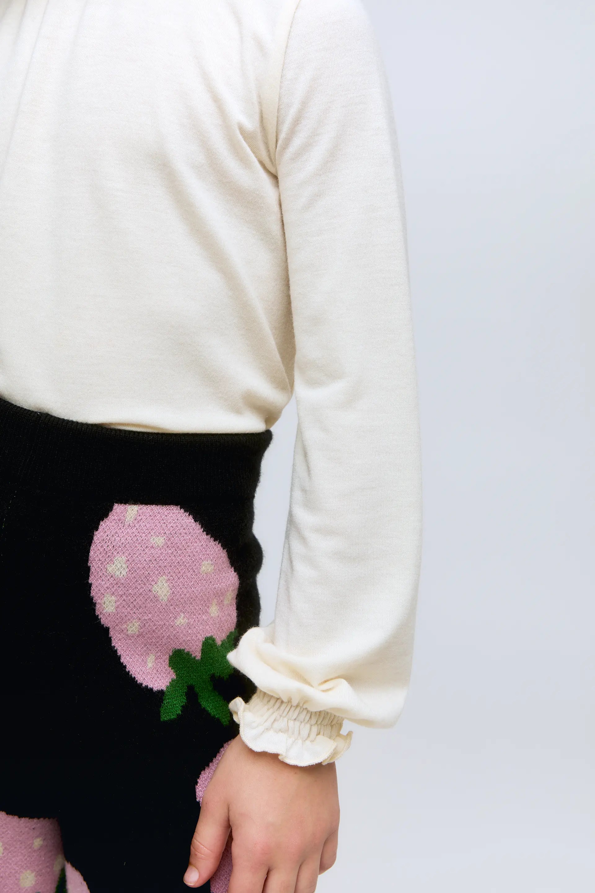 Maglione bianco da bambina a collo alto con polsini arricciati