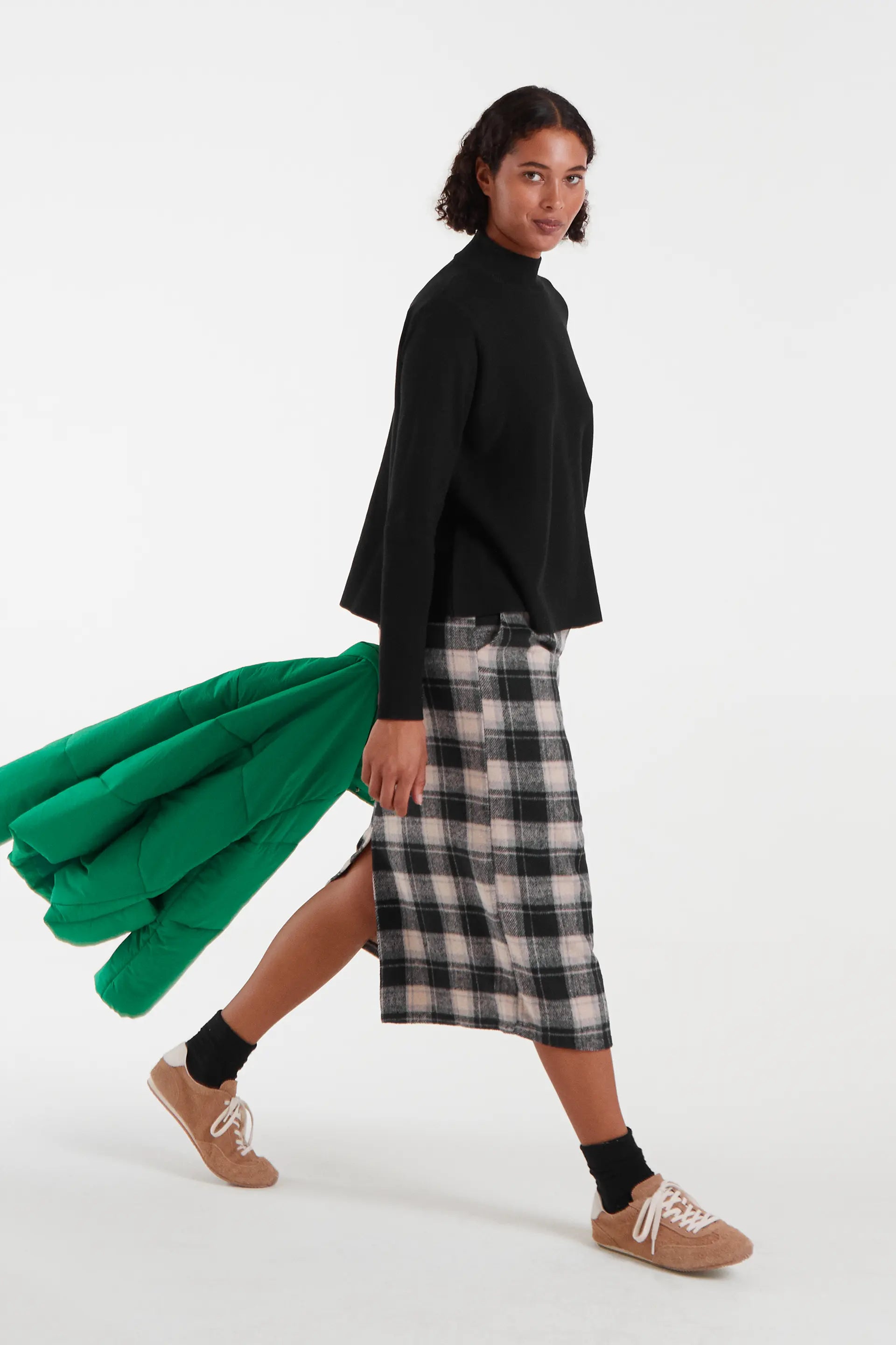 Maglione nero a collo alto svasato