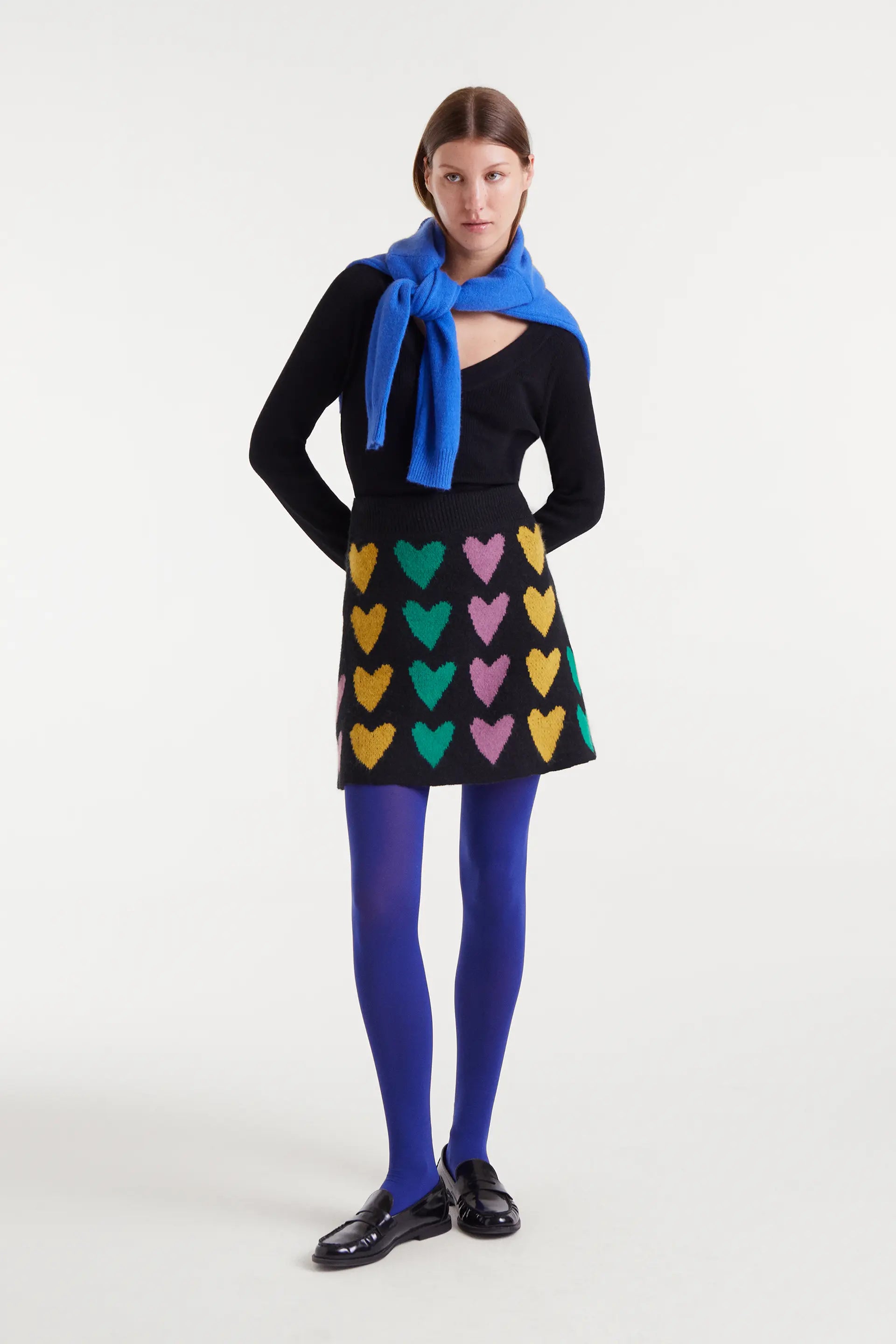 Top nero in maglia a coste con scollo a V e maniche lunghe. La modella è alta 177 cm e indossa una taglia S.