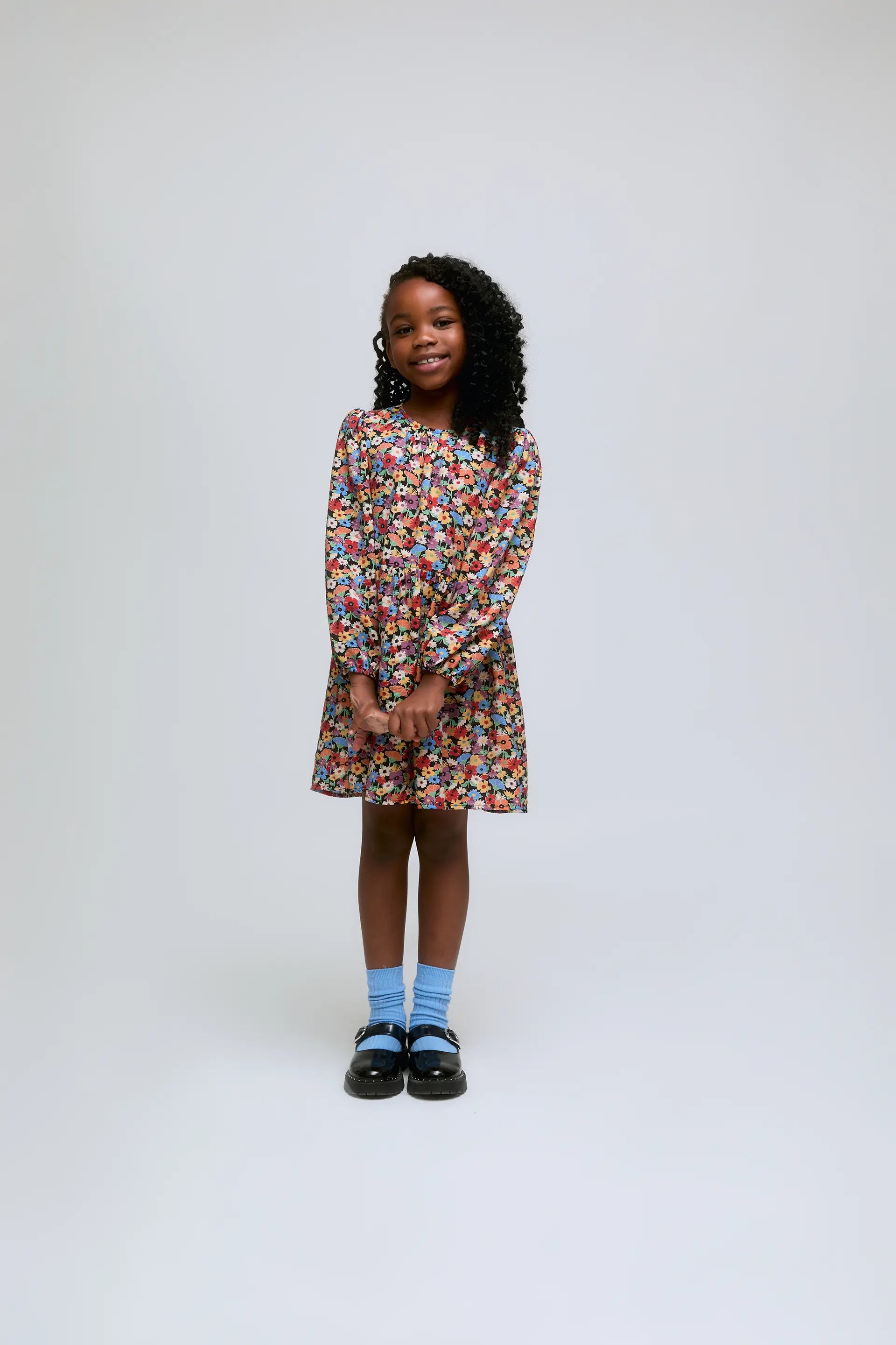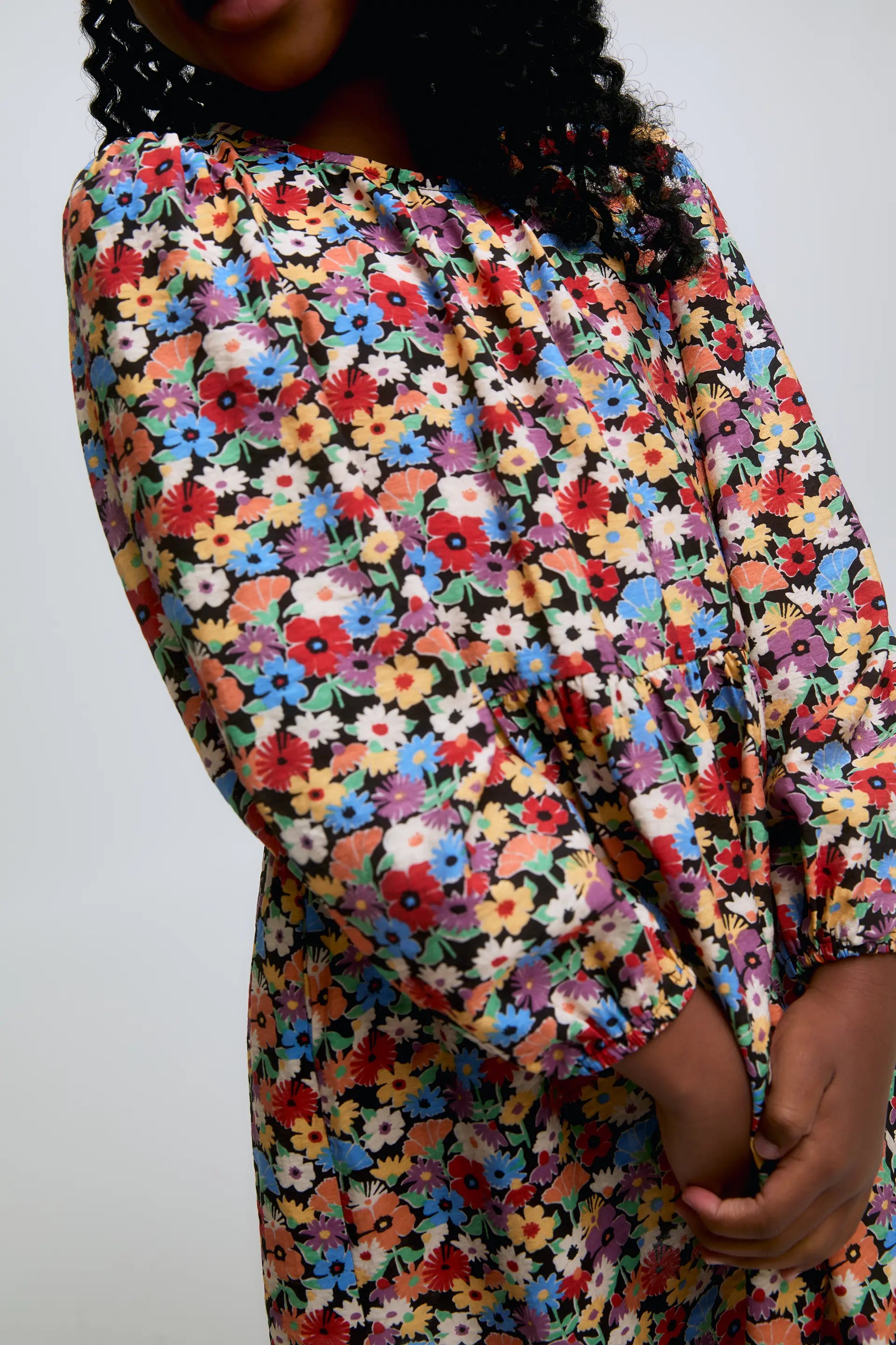 Abito corto in crêpe leggero con stampa floreale Hampton e vita leggermente arricciata. Abito a maniche lunghe con polsini arricciati e tasche laterali.