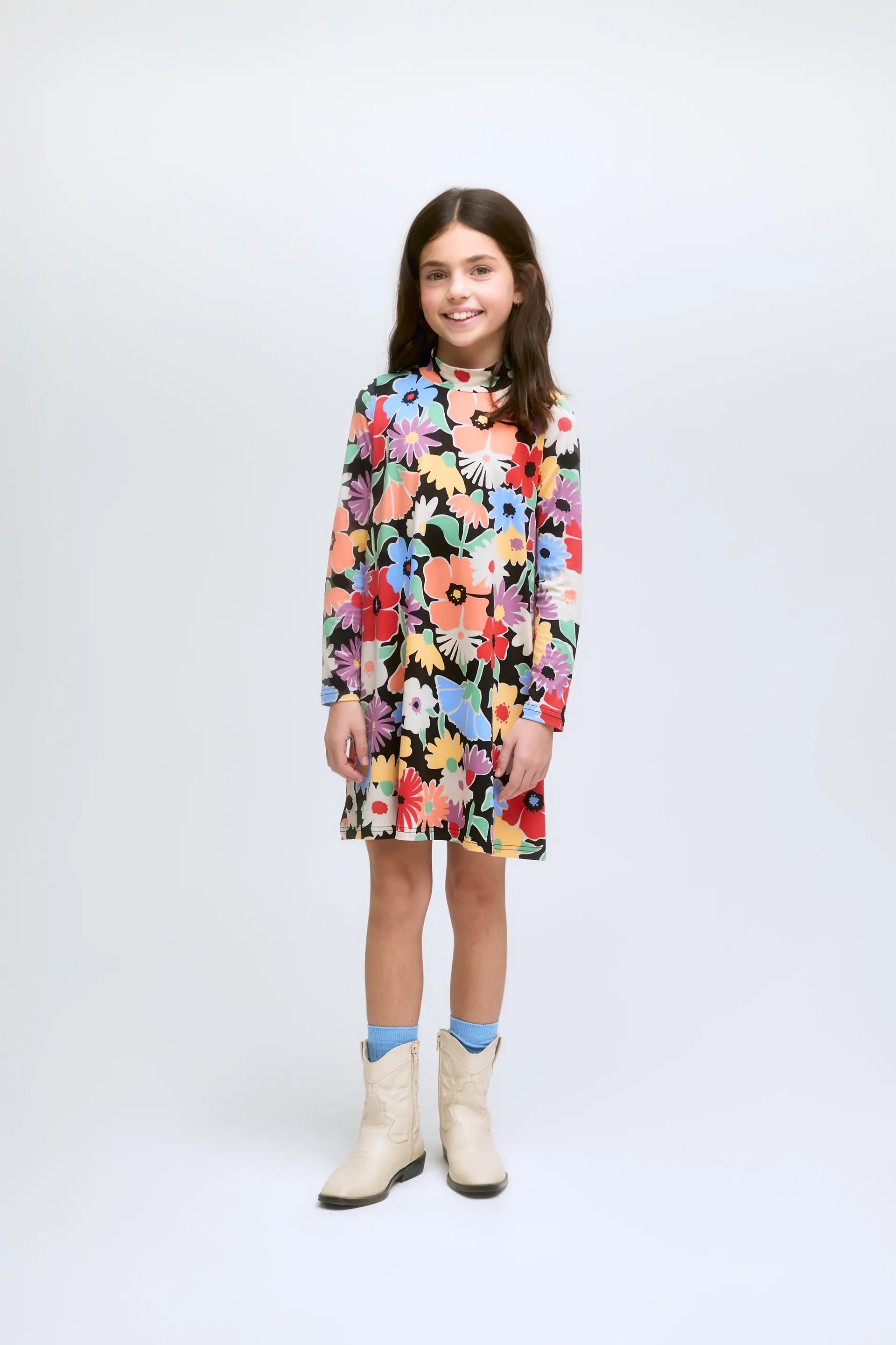 Abito corto da bambina con stampa floreale Hampton a maniche lunghe