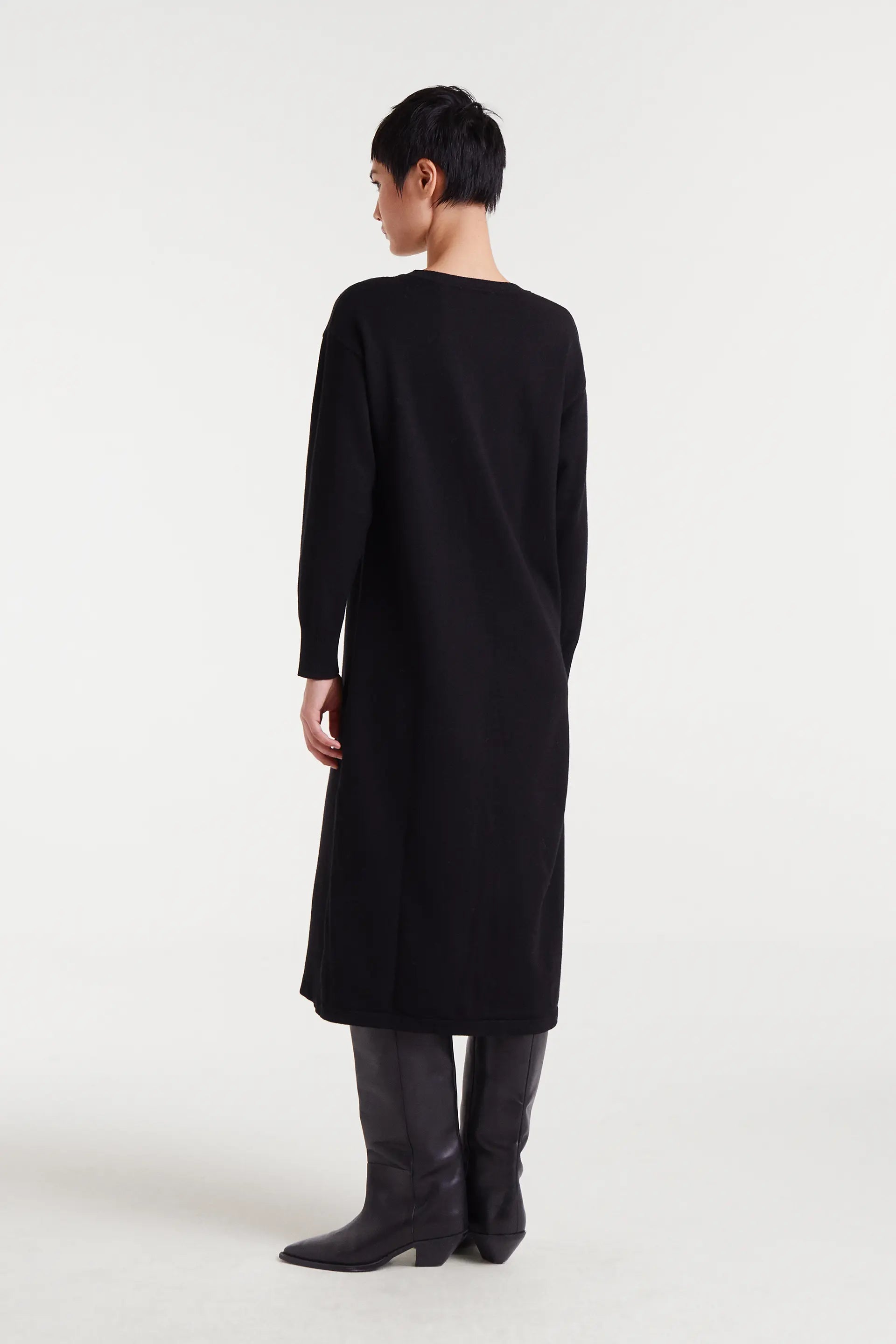 Abito midi in jacquard con stampa Super Green Heart. Scollo rotondo e maniche lunghe. Spalle leggermente scese. Dettagli a coste. La modella è alta 177 cm e indossa una taglia S.
