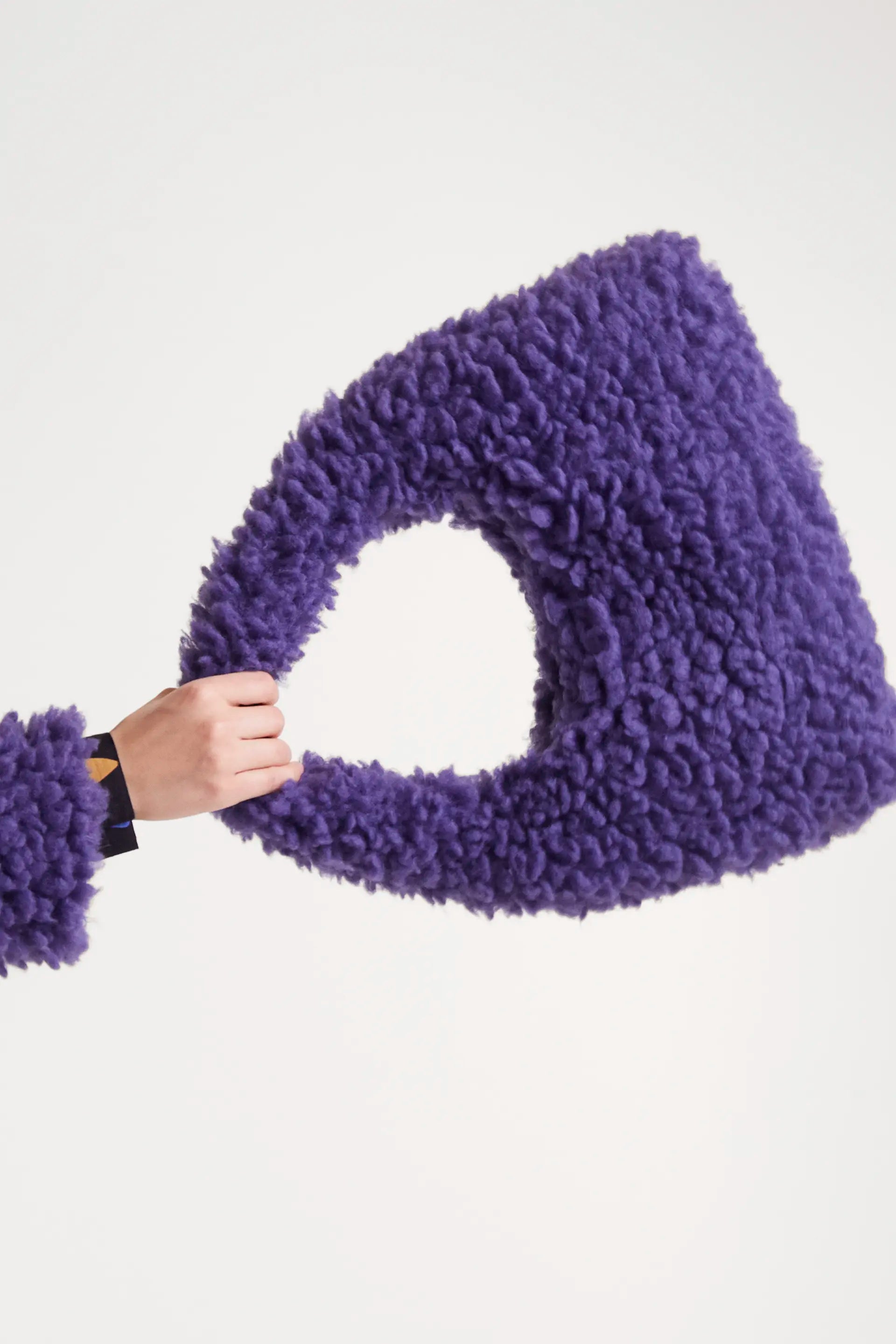 Bolso de mano con tejido Faux Fur de color morado. Cierre con imán. Asa corta. Forro interior. Talla única.