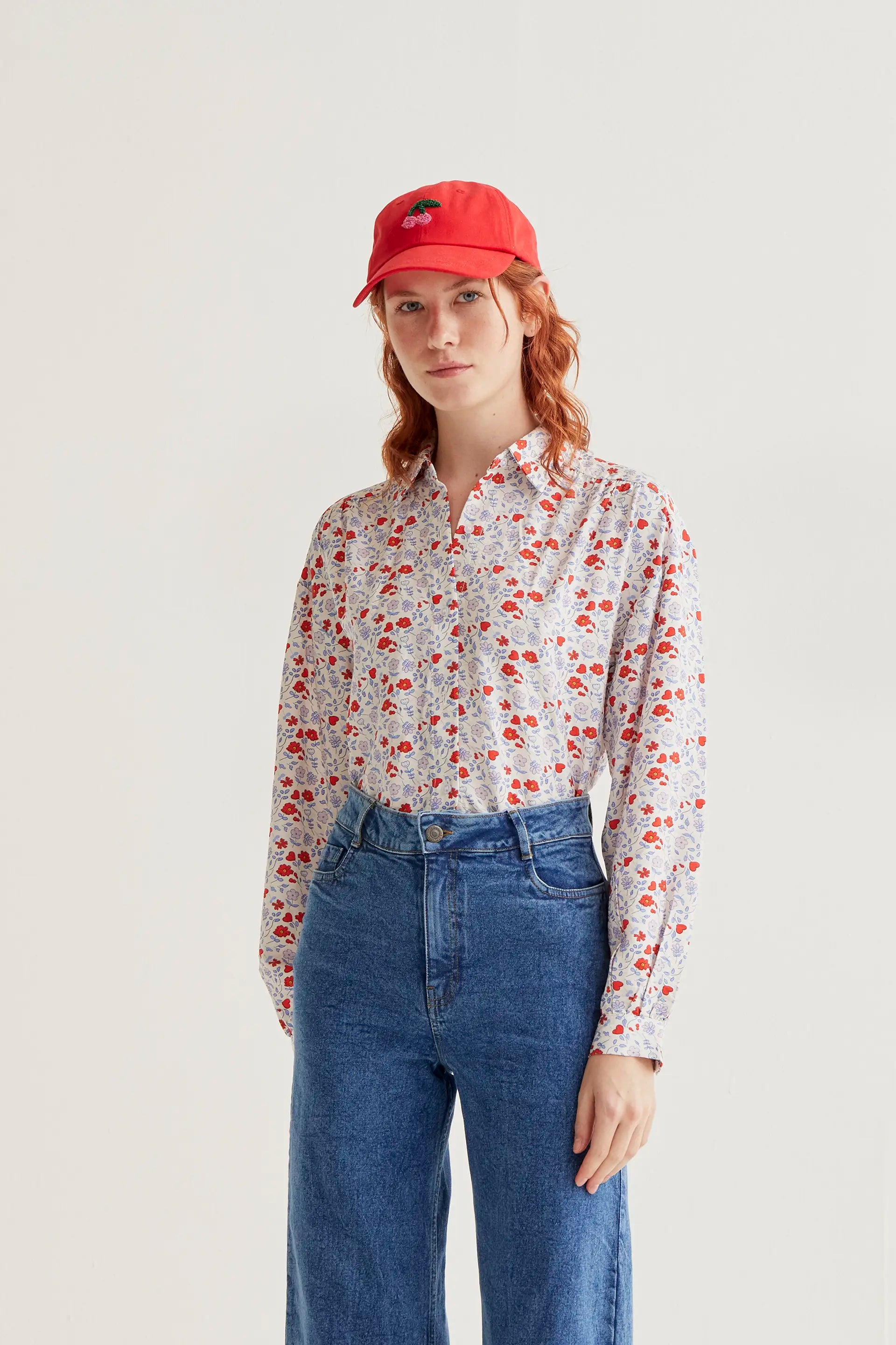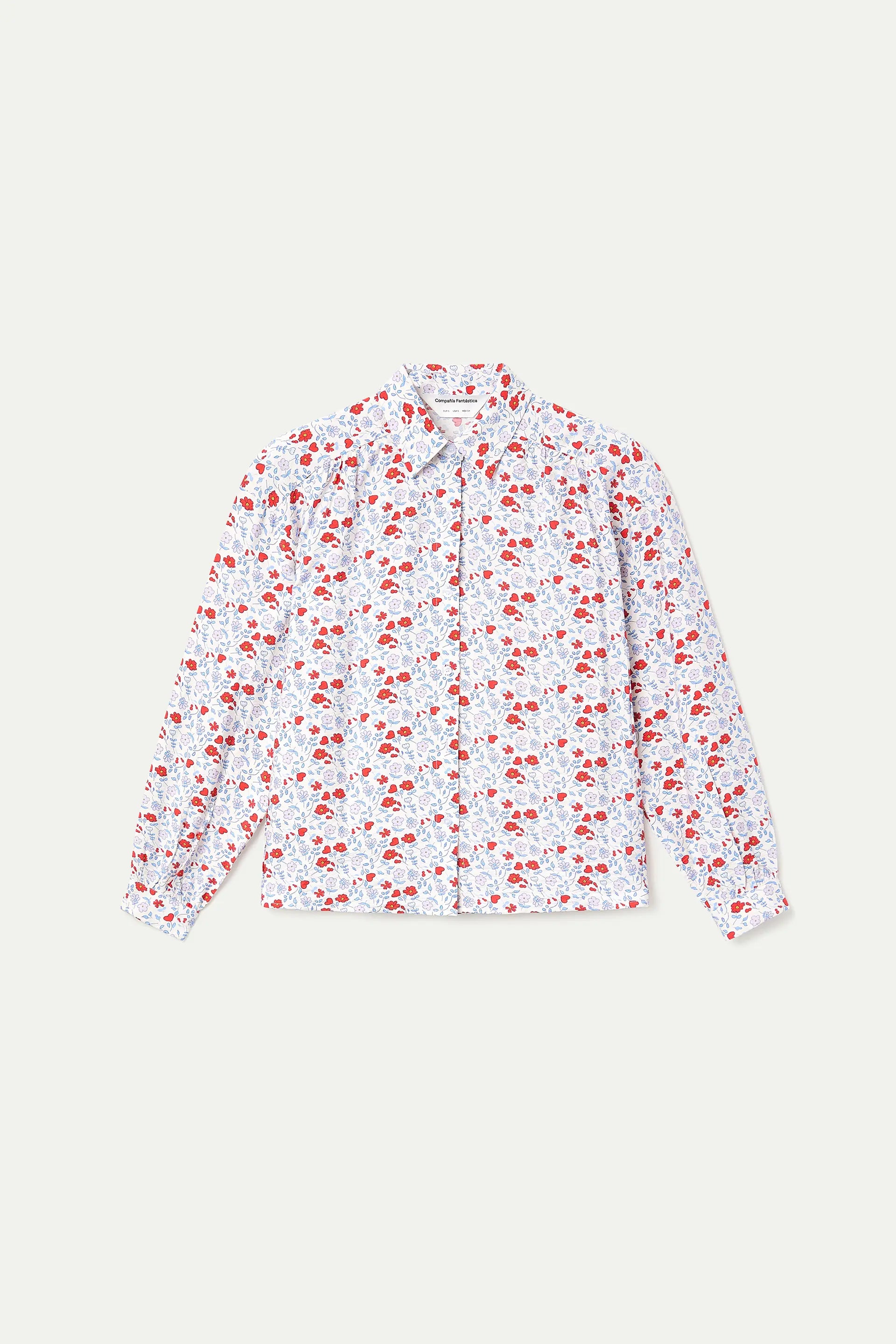 Camisa con tejido crepé ligero. Cuello con solapa y manga larga terminada en puño con botón. Cierre frontal con botones de color blanco.Hombro ligeramente caído. La modelo mide 175 cm y lleva la talla S.