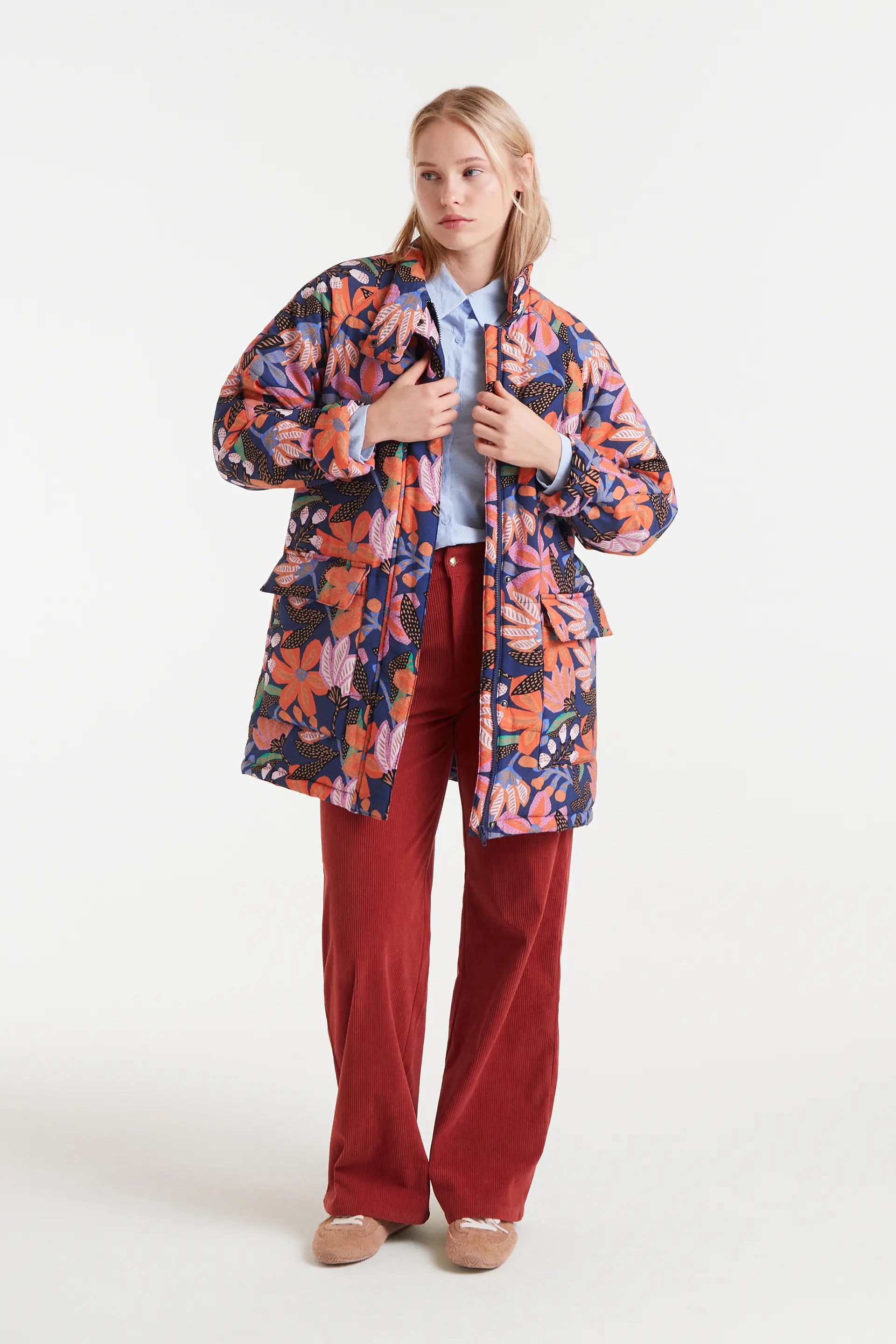 Camisa fluida con tejido viscosa de bambú de color azul. Cuello con solapa y manga larga terminada en puño con botón. Cierre frontal con botones. La modelo mide 179 cm y lleva la talla S.