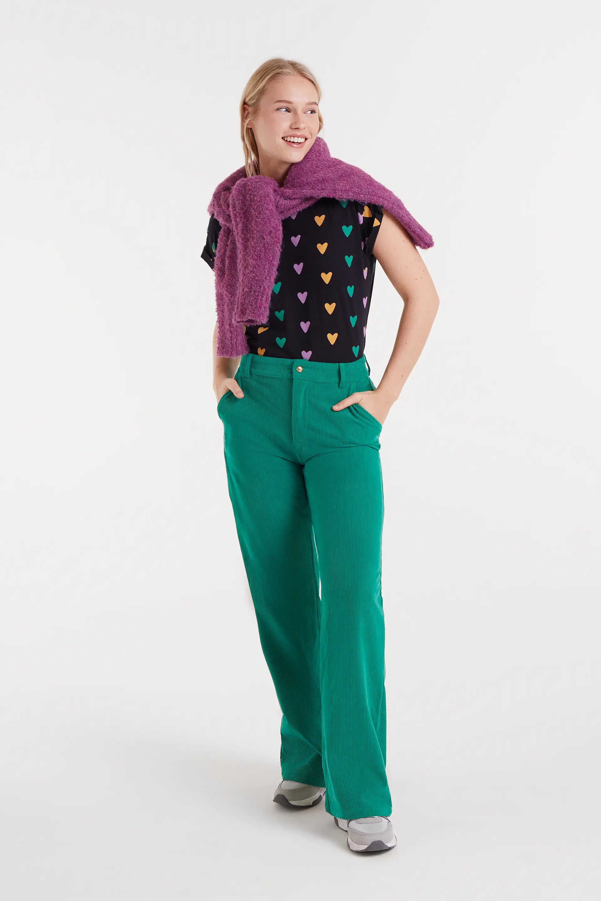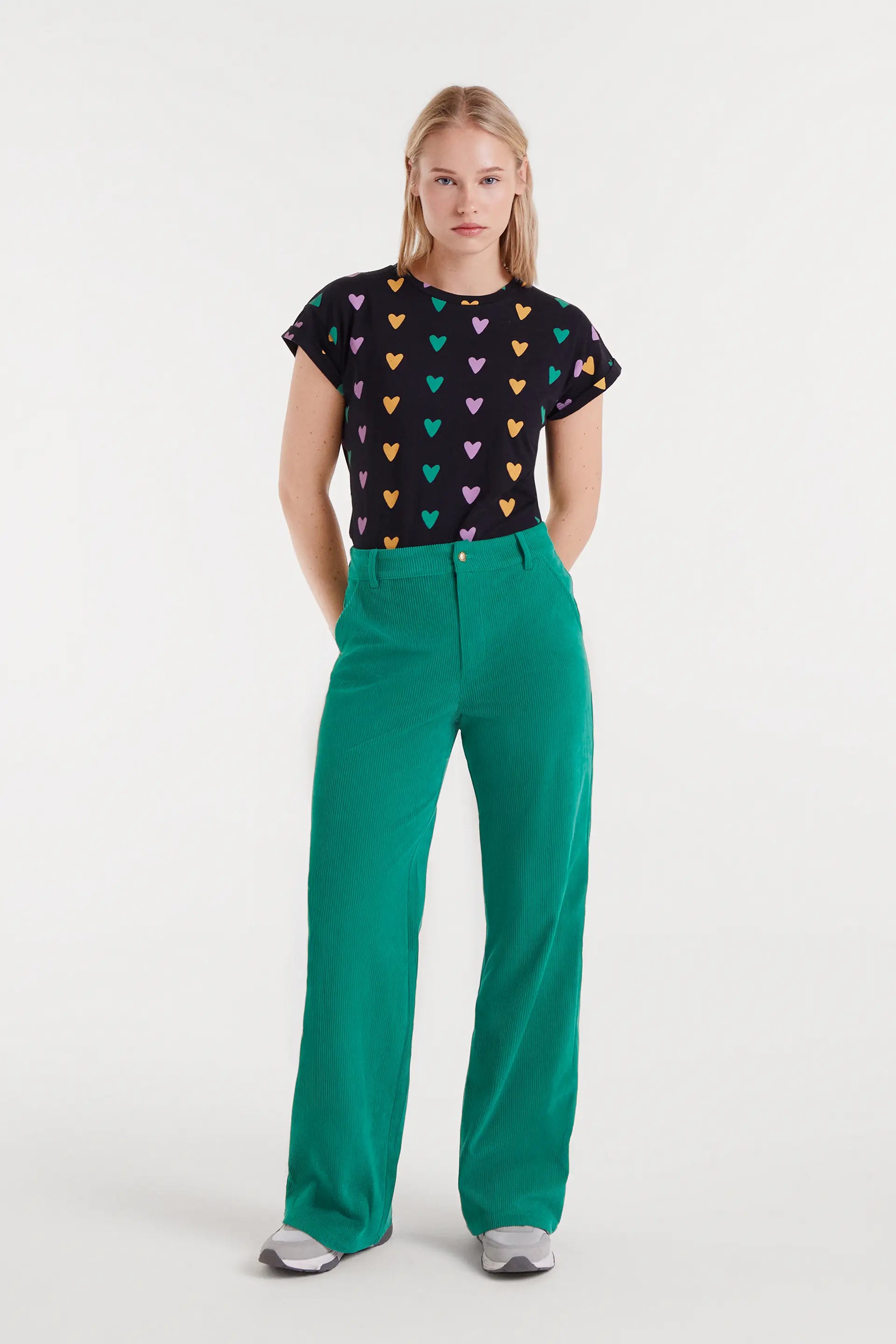 Camiseta con tejido 100% algodón de color negro con estampado Cupido Lines. Cuello redondo y manga corta con vuelta. La modelo mide 174 cm y lleva la talla S.