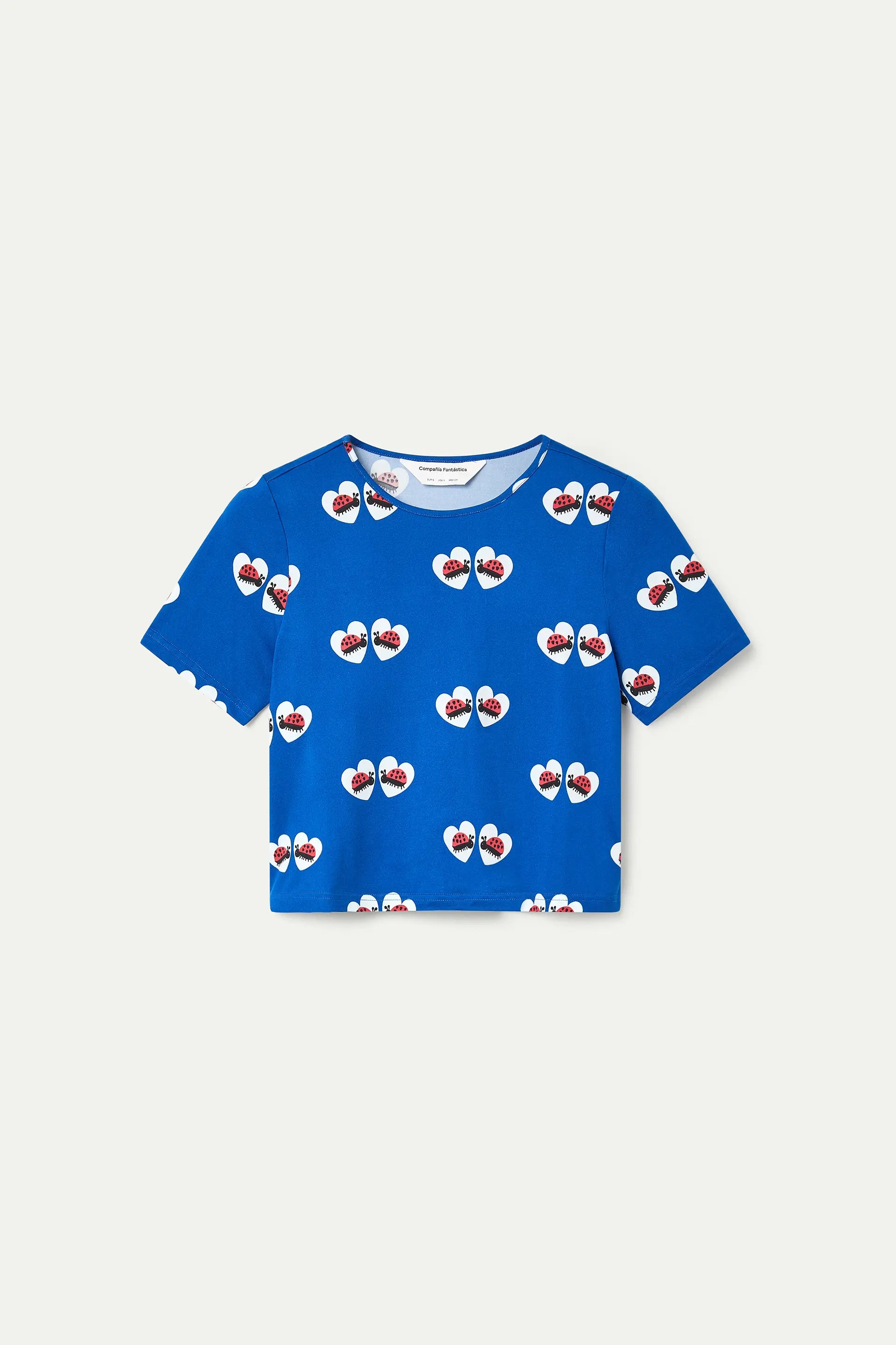 Camiseta con tejido jersey con estampado coccinella. Cuello redondo y manga larga. La modelo mide 177 cm y lleva la talla S.