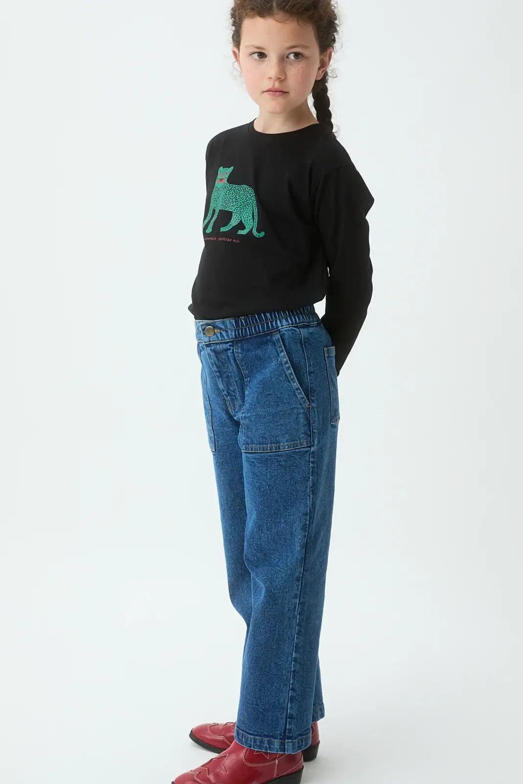 Camiseta básica de algodón en color negro, diseñada con cuello redondo y manga corta. Cuenta con un diseño gáfico en el frontal de jaguar.