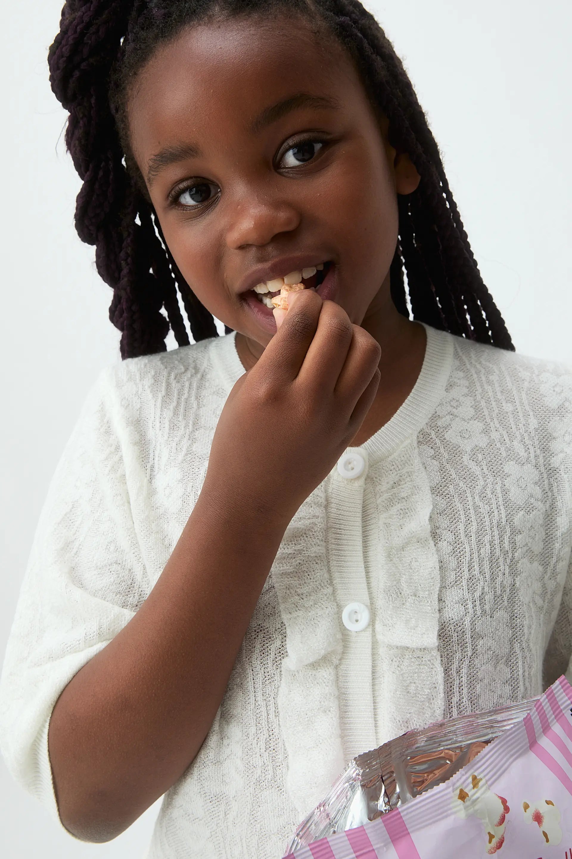 Cárdigan de niña punto blanco