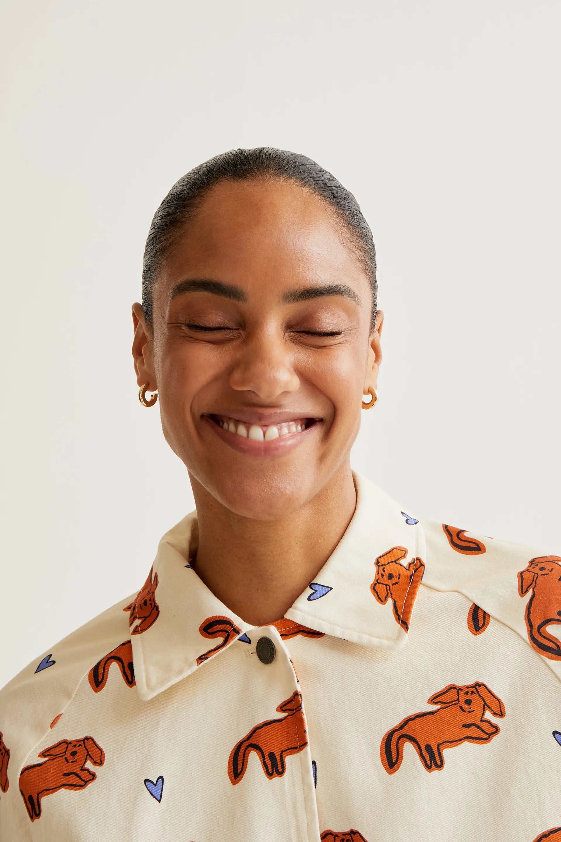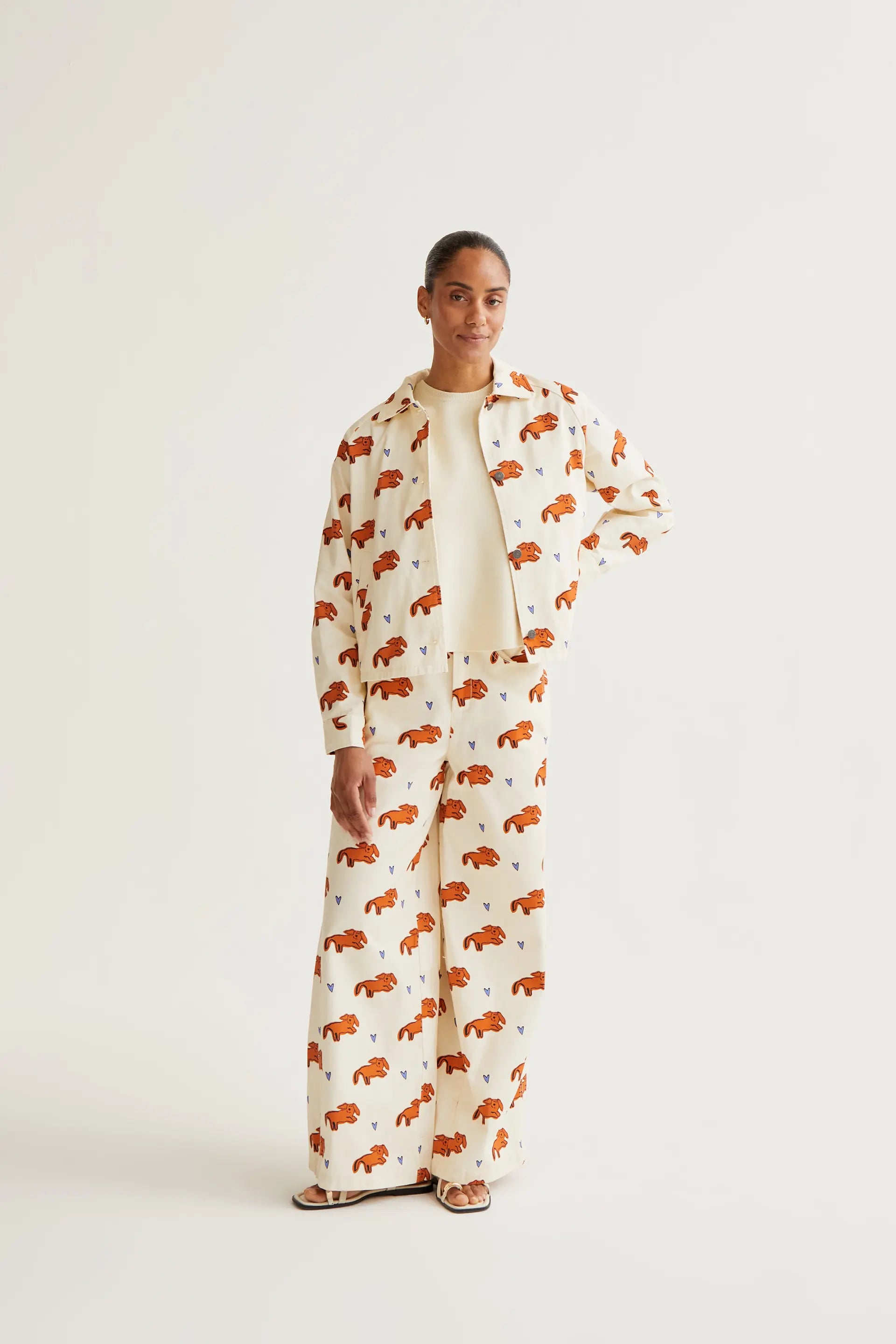 Chaqueta de tejido 100% algodón con estampado tochi. Cuello solapa y manga larga terminada en puño con botón. Cierre frontal con botones. Bolsillos laterales. La modelo mide 173 cm y lleva la talla S.