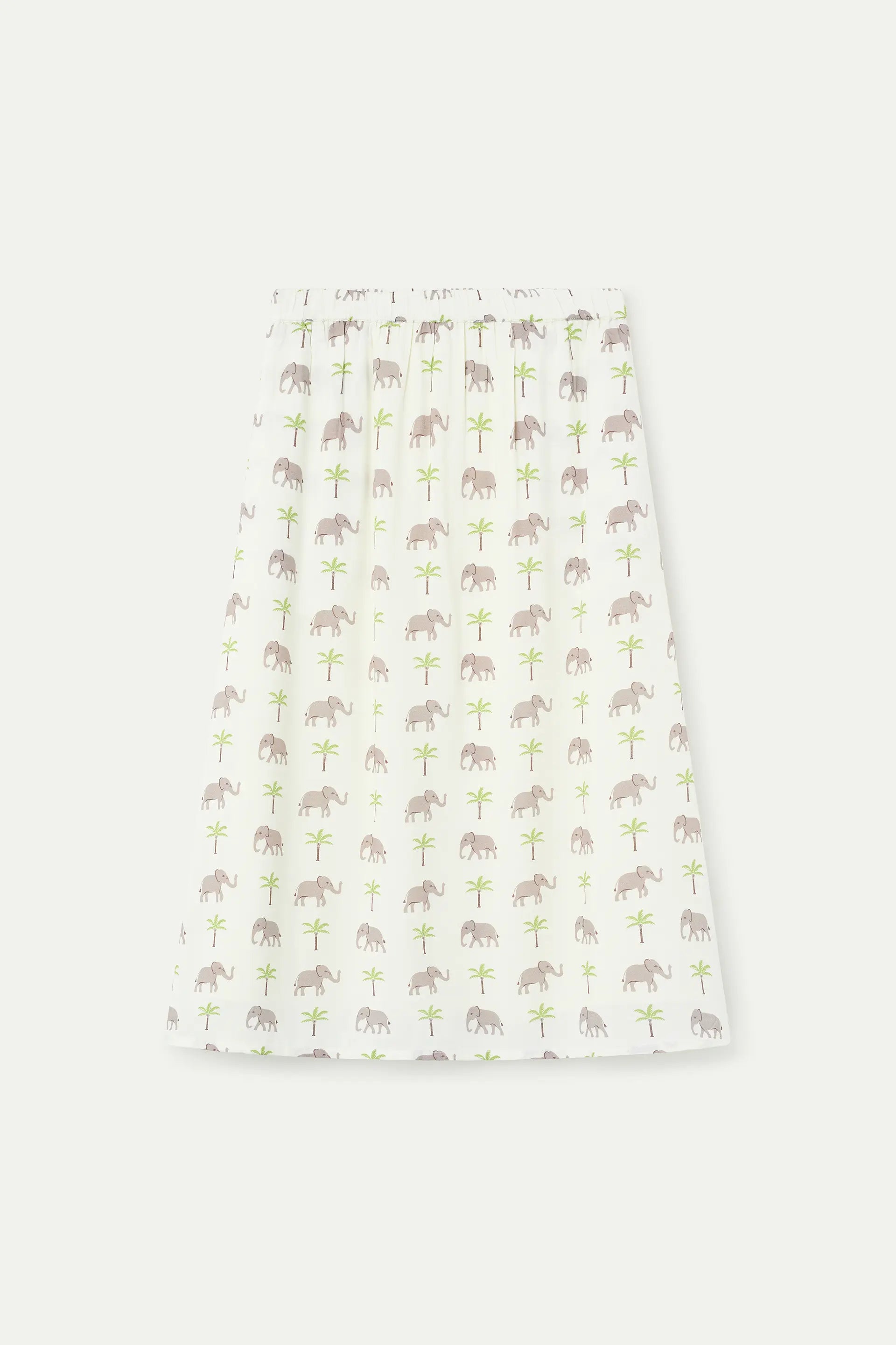 Falda de tejido rayon lenzing ecovero con estampado de elefante. Cintura elástica de tiro medio. Bolsillos laterales. Forro interior. La modelo mide 177 cm y lleva la talla S.