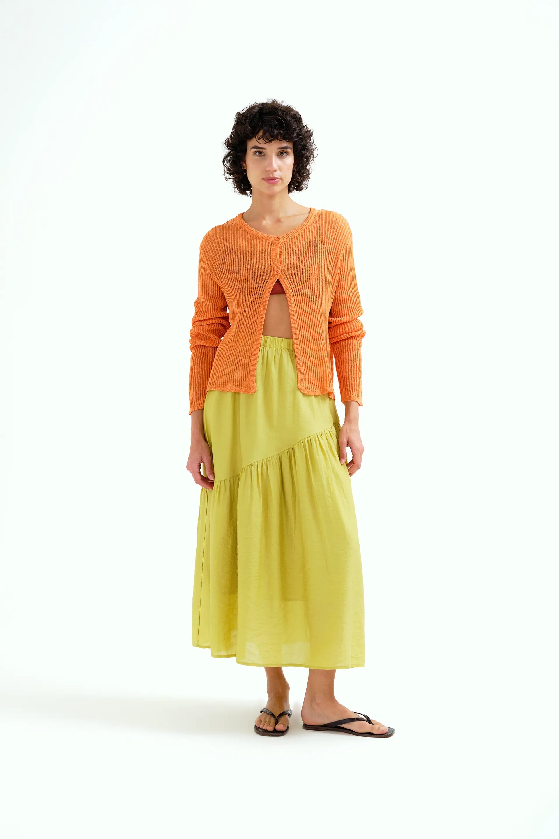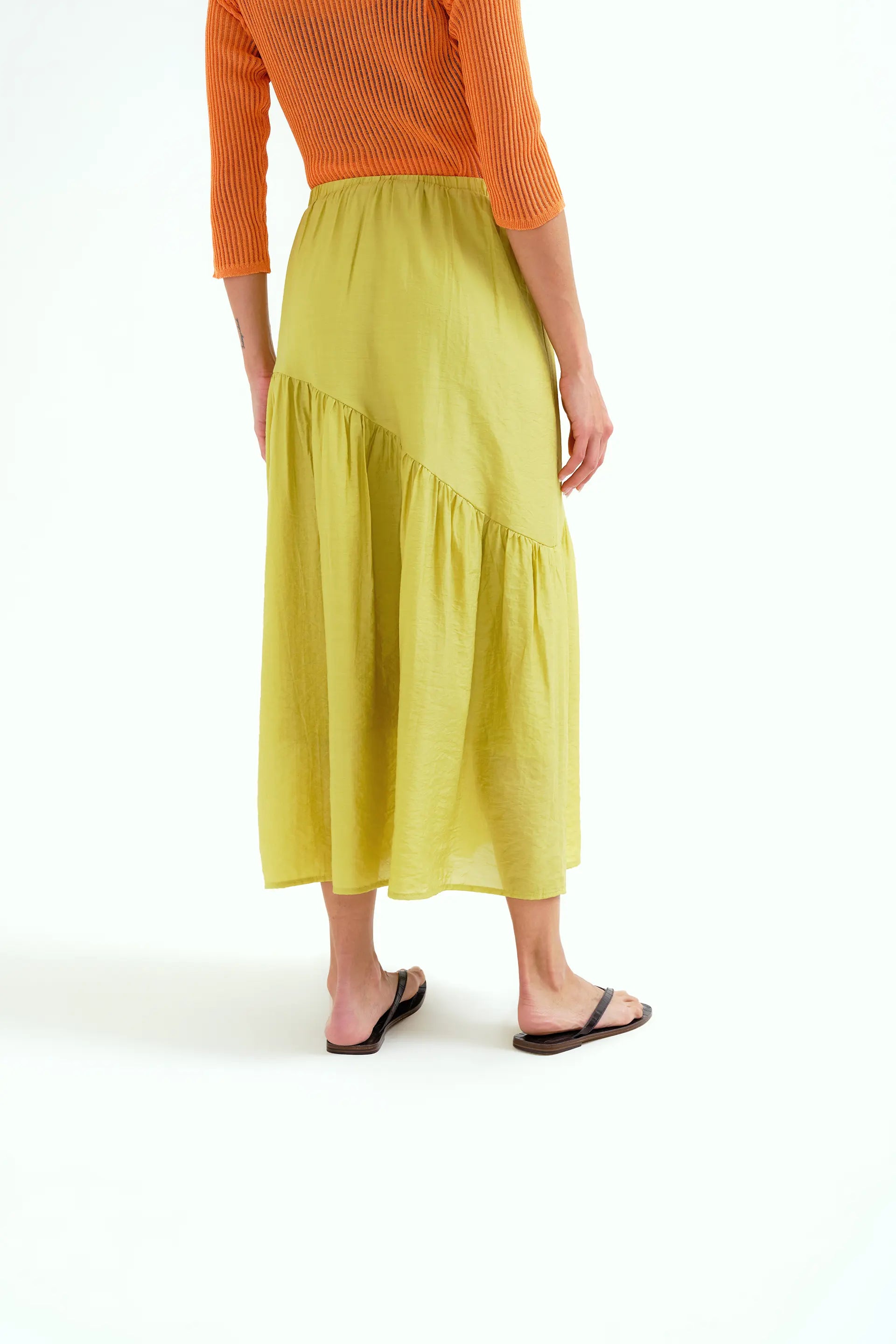 Falda larga verde pistacho con corte asimétrico