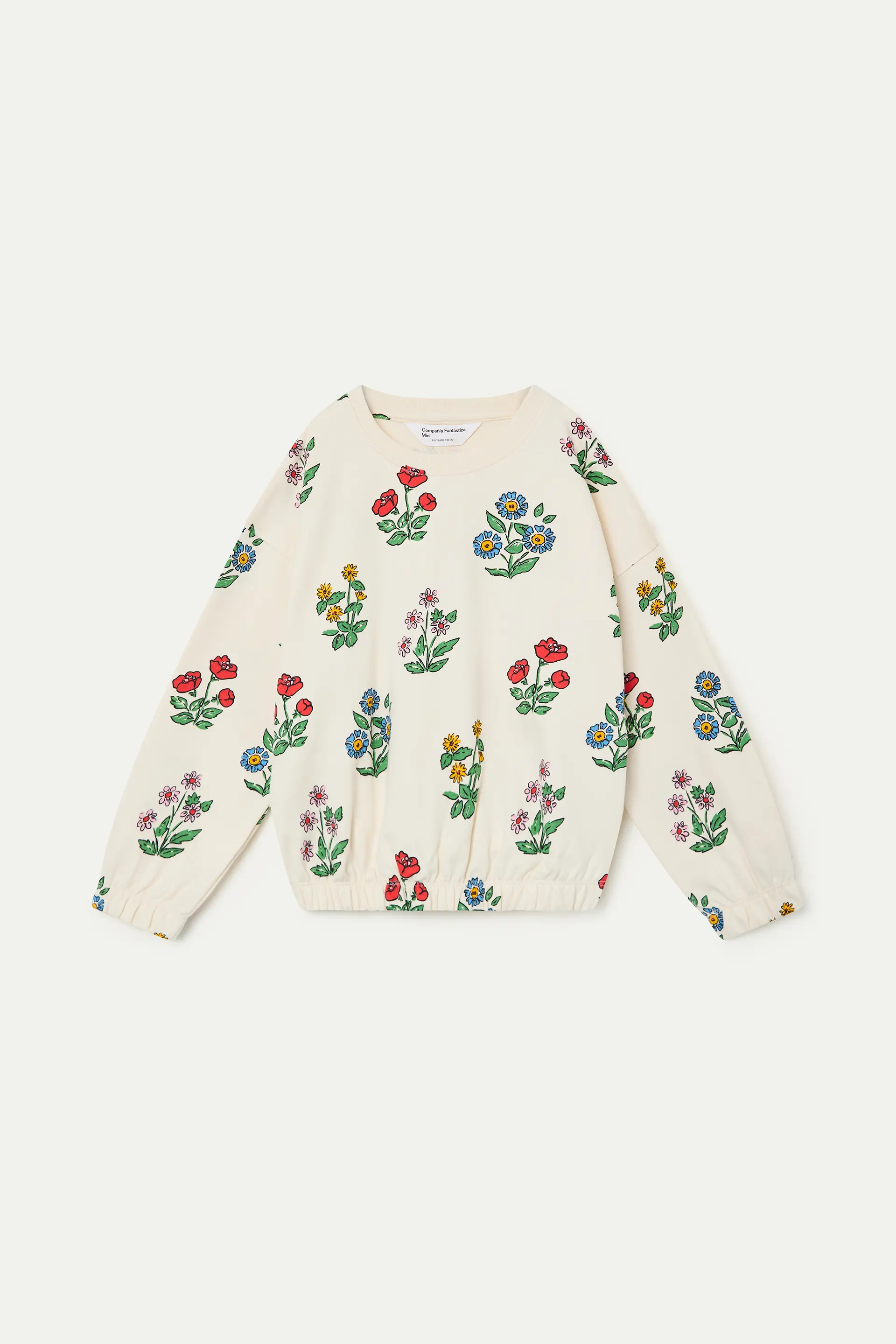 Sudadera de niña de tejido 100% algodón con estampado gardener. Cuello redondo y manga larga terminada en puño elástico. Hombro ligeramente caído. Detalles con ajuste elástico. La modelo mide 136 cm y lleva la talla 8-9 años.