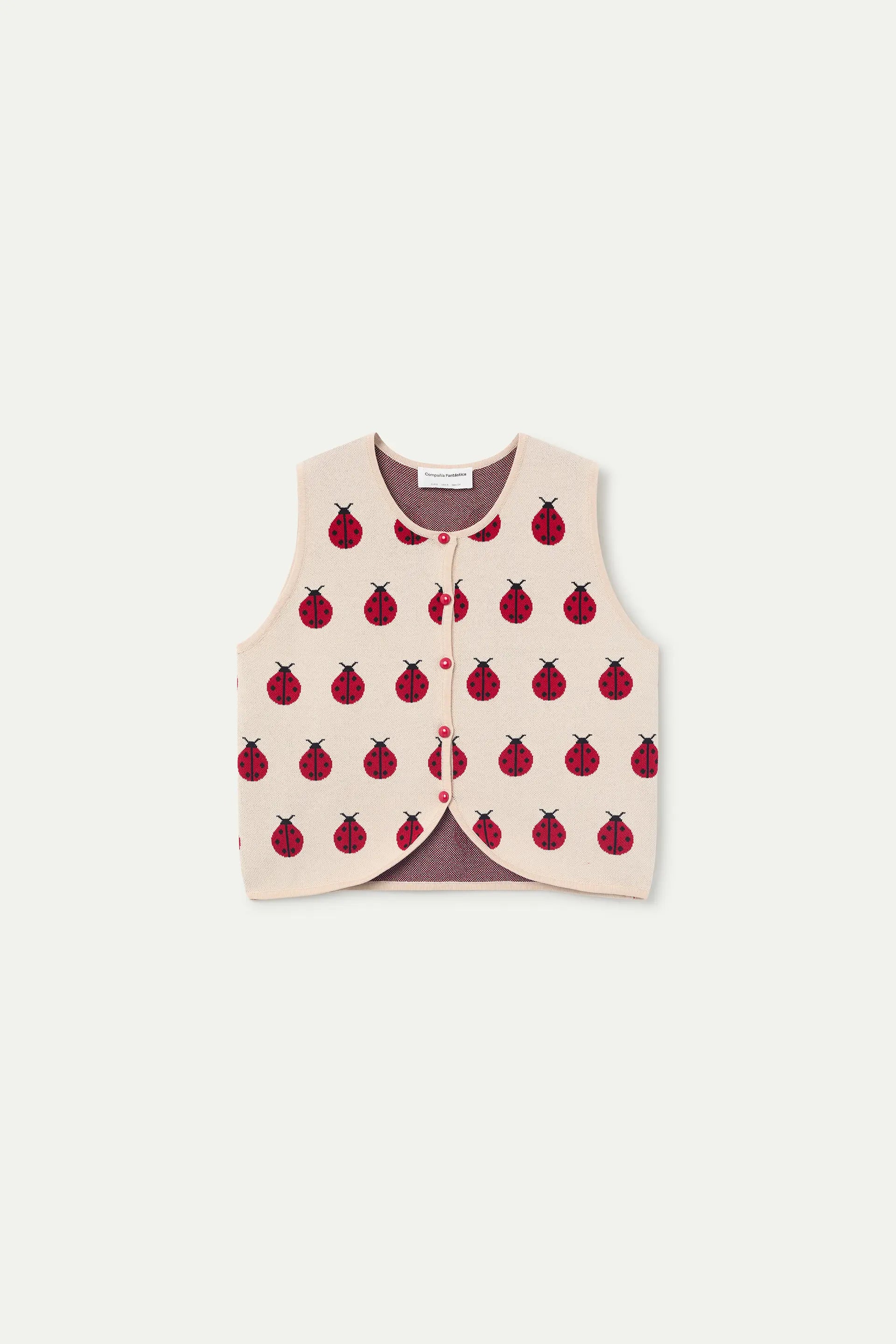 Top con tejido de punto con estampado red coccinella. Cuello redondo y sin mangas. Cierre frontal con botones de color rojo. La modelo mide 177 cm y lleva la talla S.